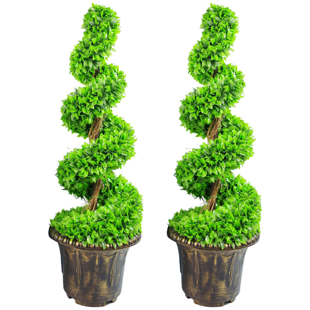 Leaf Artificial Green Large Leaf Spiral Topiary Trees with Decorative Planters 90cm 2 Pack