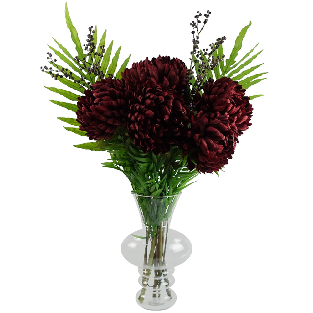 Statement bubble vase in clear glass. 35cm x 27cm x 27cm at widest points. The top rim measures 15cm. This is suitable for both real and artificial flowers. These glass vases are hand finished and there may be small differences between them. No flowers are included in this vase.