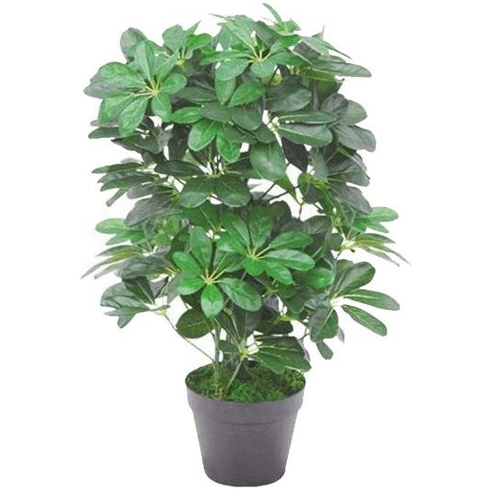 This stunning rich green plant also known as 'Dwarf Umbrella Tree' is native to Taiwan and part of the 'Araliaceae' family of plants. This artificial version is totally child and pet safe (unlike the real plants which are actually poisonous). This looks brilliant just about anywhere in your home but look particularly nice in conservatories or windowsills. This is a highly realistic artificial plant. This particular leaf colour is a replica of the variation known as 'Dwarf Schefflera Arboricola'. It has 450 leaves (approx), stems are fully wired so this plant is highly customisable to fit your space perfectly. It is highly realistic with botanically accurate foliage. It comes potted in a plain plastic pot and is ready to display.