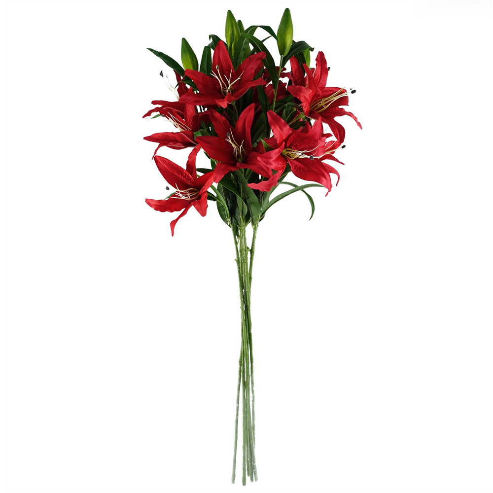 Leaf Red Large Lily Artificial Flower 100cm 6 Pack
