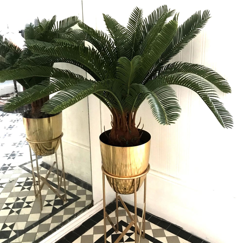 With its modern, minimal shape and green fronded leaves this artificial Cycas Palm plant is a popular choice for modern interiors. This Cycas plant has a tropical look with authentic trunk detailing and realistic leaf formation arrangement. A bold and appealing choice suitable for both residential and commercial applications. This artificial plant stands 70cm high, width 70cm and depth 70cm. The plastic pot measures 17cm wide x 16cm tall. It is highly realistic with botanically accurate foliage. It comes potted in a plain black plastic pot and is ready to display. You can easily put this inside a larger planter if you wish.
