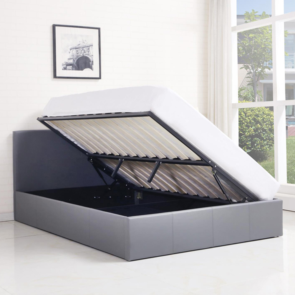 Add a touch of elegance and comfort to your bedroom décor with the Portland Small Double Grey Leather Ottoman Bed with Mattress. It has an easy-to-access under-bed storage area, keeping your bedroom well-organised and clutter-free. The high-quality build ensures long-lasting comfort and durability for years to come. The included mattress is soft and comfortable, allowing you to enjoy a restful night's sleep. It is easy to assemble with straightforward and clear instructions provided. The bed can be assembled to open from either the left or right side, to suit the area it is placed in. It comes with a weight capacity of about 130kg. This unique frame is sure to transform your bedroom into a serene haven.
