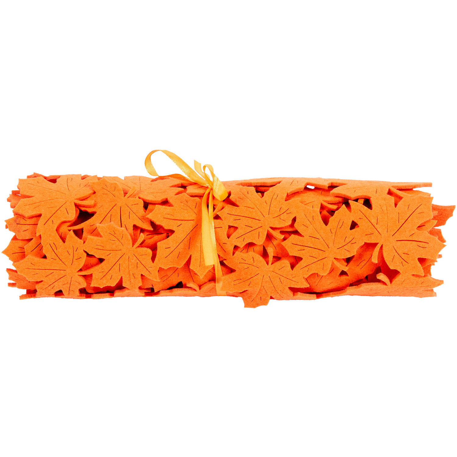 Infuse your dining table with the colours of Autumn using this Leaves Table Runner. This charming table runner brings a touch of elegance to your seasonal decor. Adorned with intricately cut maple leaves in an orange hue, it is perfect for elevating your table setting effortlessly.