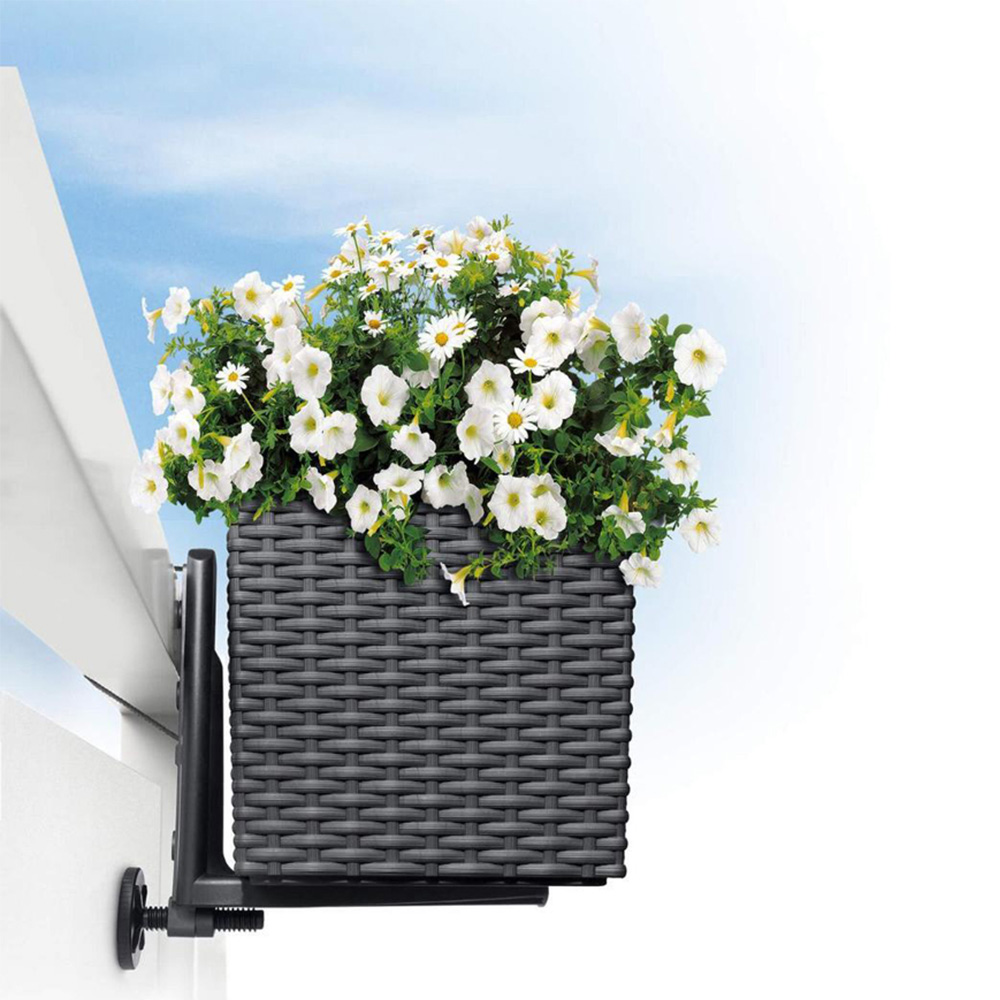 Plant in style with the Lechuza Black Balcony Bracket 2 Pack, expertly designed to complement balcony troughs of varying sizes. Embodying a seamless blend of functionality and durability, the balcony bracket is meticulously crafted from plastic with an elegant metal finish, ensuring resilience against the elements. These adjustable brackets cater to a range of Lechuza Planters, highlighting their adaptability. Perfect for adorning railings and balconies, these sturdy plastic brackets easily stand the test of time.
