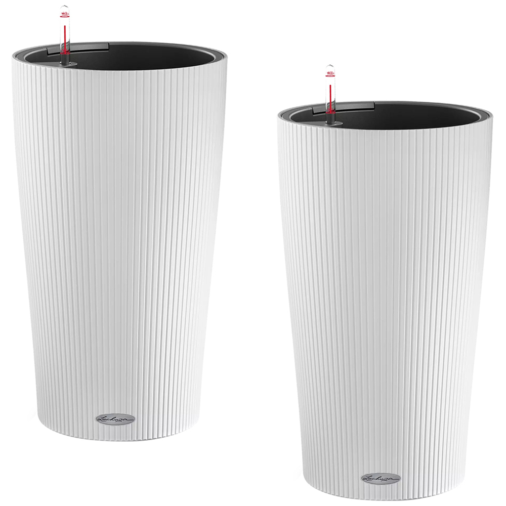 Elevate your gardening experience with this innovative floor self-watering Lechuza Cilindro White Polyresin Self Watering Planter 41cm 2 Pack. Featuring a sophisticated matt finish and a removable pot liner, it makes plant care stylish and easy. The advanced watering system, complete with a water level indicator, ensures consistent moisture and nutrients for up to 12 weeks. It comes in a pack of two and is built to be UV and frost-resistant, ideal for both indoor and outdoor use.