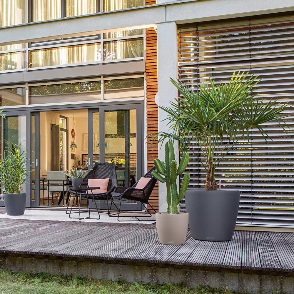 Transform your porch, poolside or patio with the Lechuza Classico Sand Brown Poly-Resin Self-watering Planter 21cm 2 Pack. This self-watering planter with a water level indicator comes in a matte finish, providing a modern edge to your decor. It features a high-grade matte surface and is UV and frost-resistant, seemingly ideal for outdoor and indoor use. The planter includes a high-quality plastic removable separator with a matte surface and pure mineral plant substrate. The intelligent planter provides plants with water and fertilizer for 2-12 weeks, depending on the planter size. Top water your plant for the first 10-12 weeks to help it adapt to its new self-watering home. After this period, you can fill the water tank below, and the plant will take the required water at times.