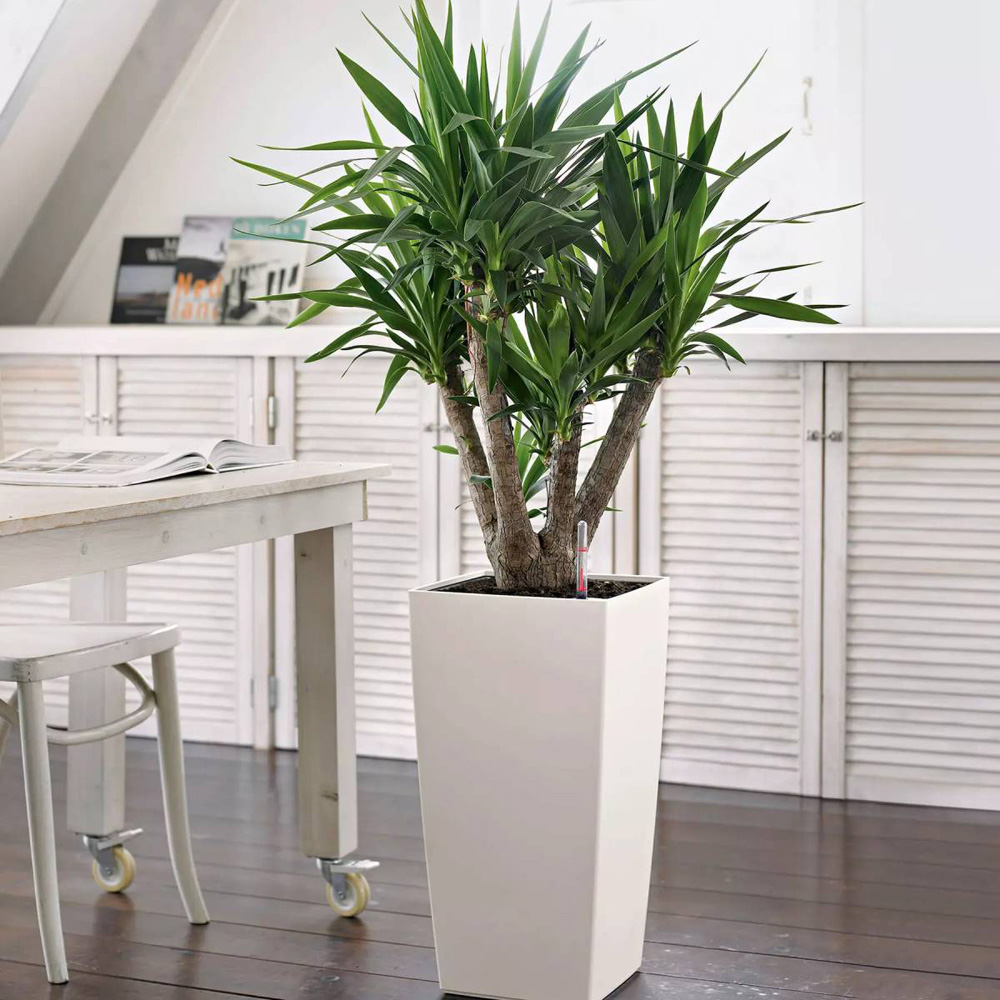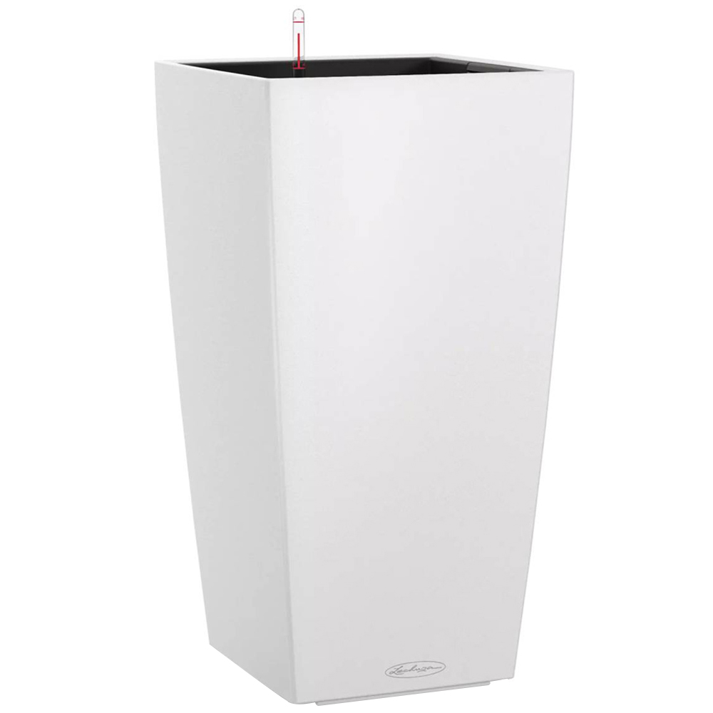 Upgrade your porch, poolside or patio with the Lechuza Cubico Colour 30 White Poly-Resin Self-watering Planter 56cm. This self-watering planter comes in a matte finish, providing a modern edge to your decor. It features a high-grade matte surface and is UV and frost-resistant, seemingly ideal for outdoor and indoor use. This Cubico Planter mimics the look of a metal planter pot but has been solely crafted from premium quality plastic. The planter includes pure mineral plant substrate with fertilizer and intelligent planter, providing plants with water and fertilizer for 2-12 weeks, depending on the planter size. Top water your plant for the first 10-12 weeks to help it adapt to its new self-watering home. After this period, you can fill the water tank below, and the plant will take the required water at times. There is a drainage plug to help you drain the excess clogged water. The internal measurements of the planter are H56 x L30 x W30cm and 14L without the self-watering system. Please remember that this will occupy some space inside the unit, reducing your overall planting space.