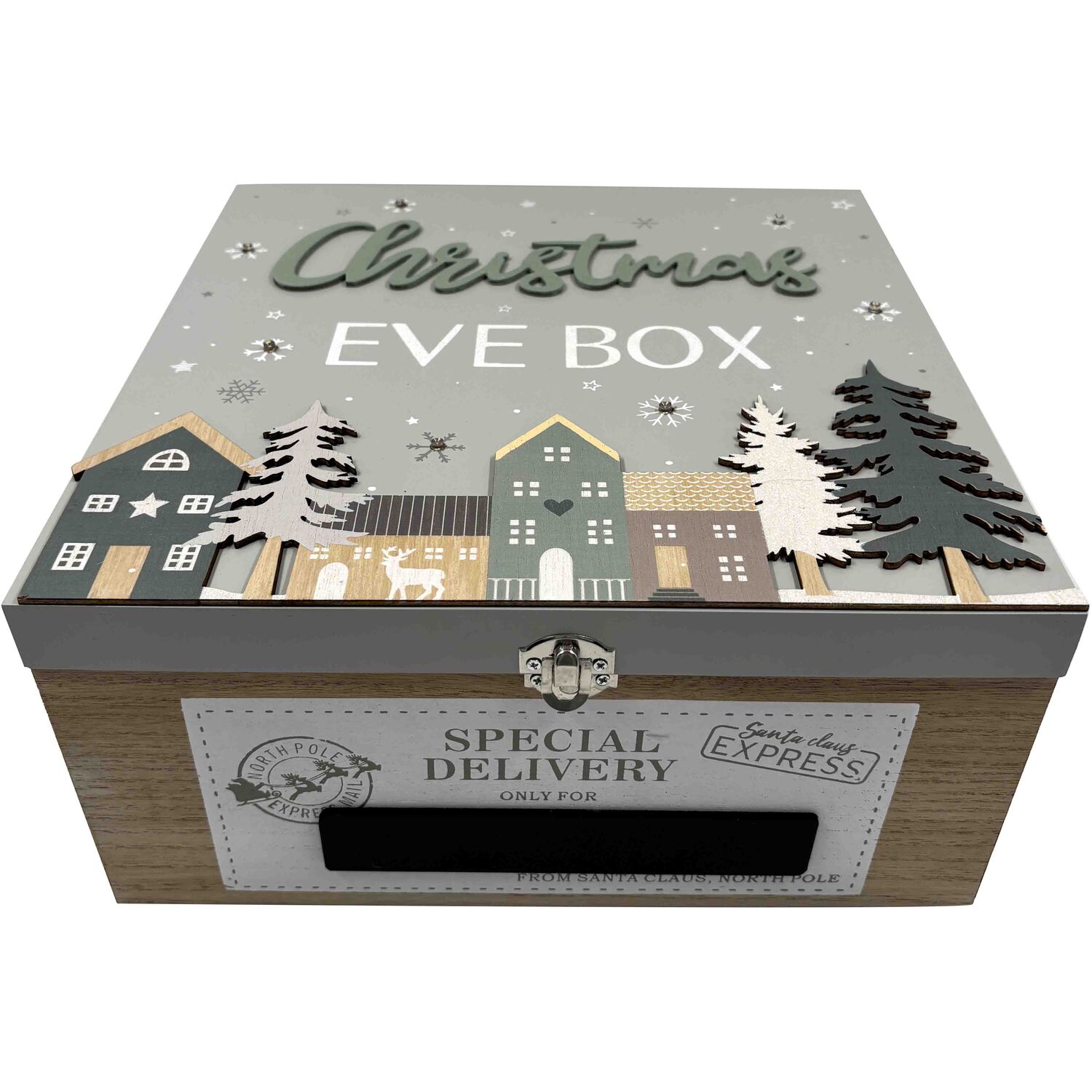Make Christmas even more magical for your little one by presenting them with this LED Christmas Eve Box. The box has a traditional design featuring cosy houses, winter trees, and snowflakes, and is finished with a mini blackboard for your child's name. It includes warm white LEDs in the lid for an inviting feel and is the ideal size for little gifts for your loved one to open on Christmas Eve. Finished with a closure, it's sure to look wonderful under any Christmas tree.