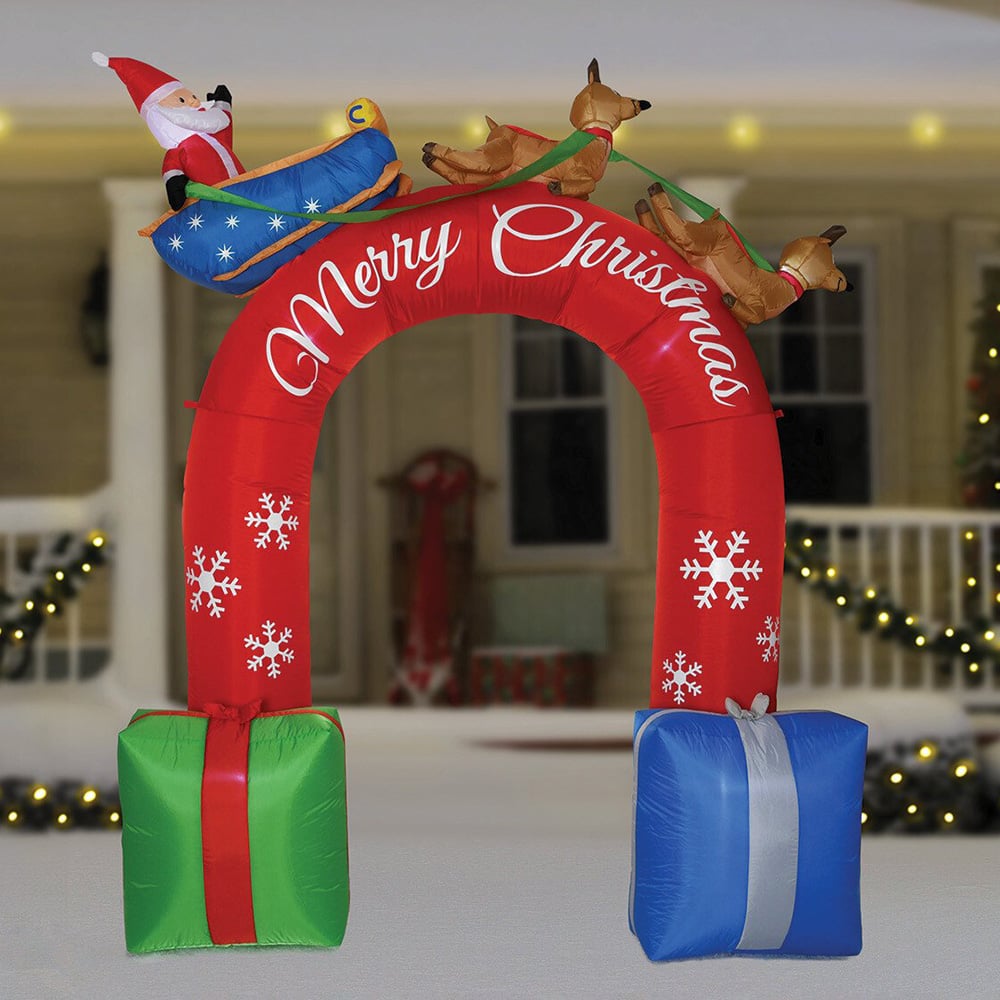 Make your space stand out this Christmas with the Christmas Inflatable Arch 7ft. This delightful decoration quickly inflates and brings festive cheer to your space. Featuring a lovely seasonal design adorned with warm white LEDs, it lights up beautifully and brightly. Crafted from premium polyester and plastic, it comes with a handy cable. Perfect for creating a welcoming and festive atmosphere, it will become a hit with family and friends.