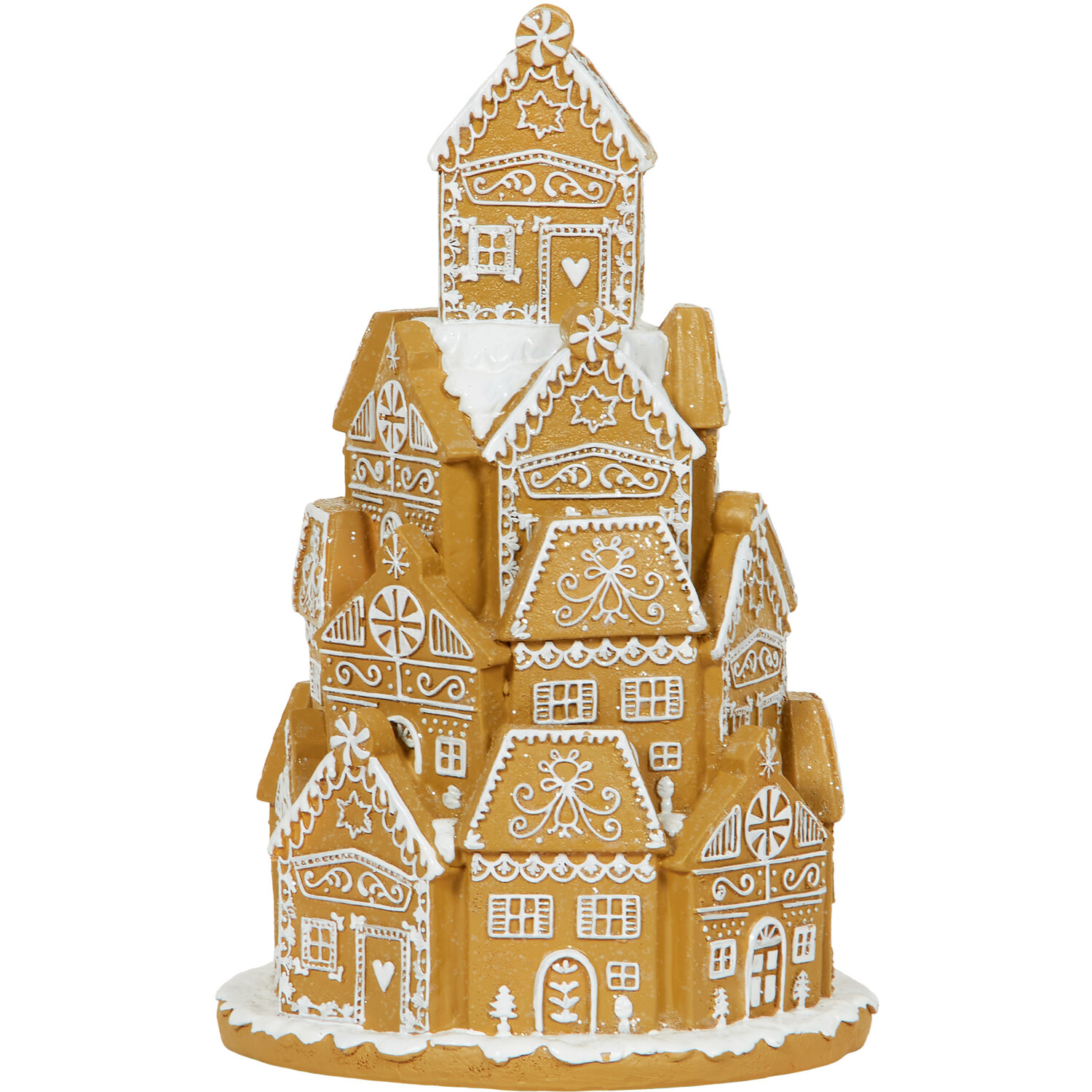 Elevate your festive decor with the Candy Cane Lane LED Frosted Gingerbread Village Scene. The ornament features multiple gingerbread houses decorated with 'frosting' and traditional designs to resemble a real gingerbread house. Set this ornament anywhere in any room to make your home Christmas-ready in no time.