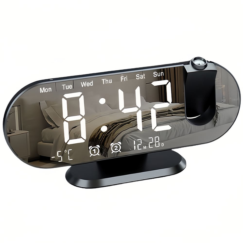 Elevate your bedside with the sleek and stylish Jaoyeh Trading White Font LED Smart Projection Clock. The LED alarm clock seamlessly blends modern design with practicality, making it an essential addition to your bedside. It features a sleek mirror finish that adds a touch of elegance to any room. The clock’s advanced projection capabilities allow you to easily view the time on your ceiling or wall, while the temperature and humidity display keeps you informed about your environment. With its combination of style and functionality, this clock is perfect for anyone looking to enhance their bedroom setup.