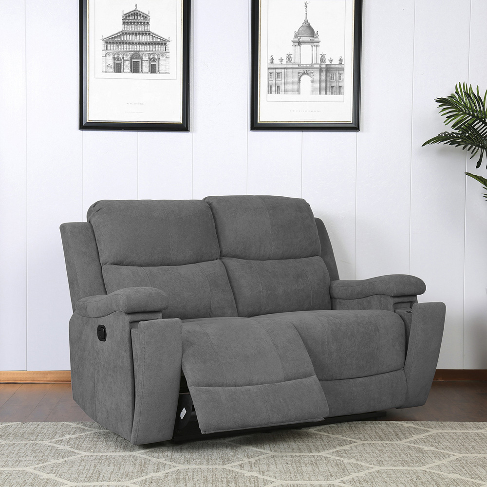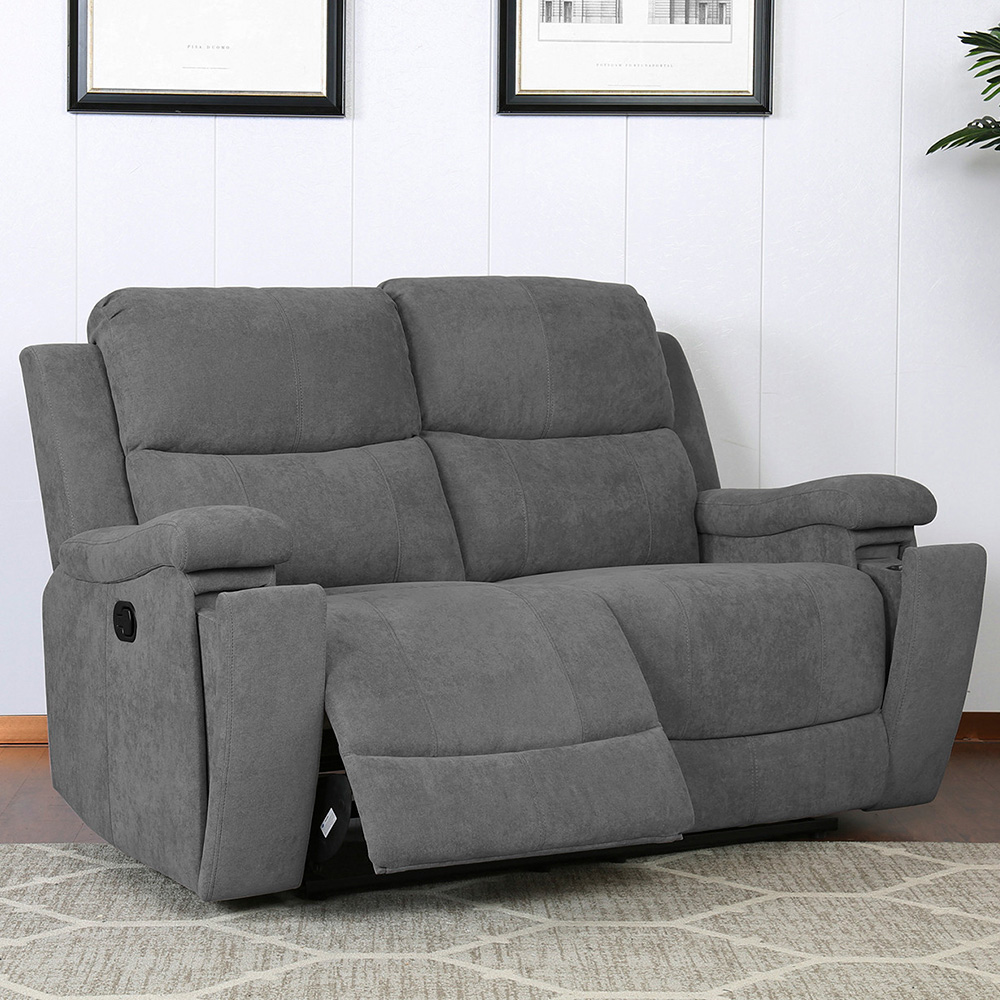 Cosy up for morning cuppas, afternoon catch-ups, movie nights and more with the super comfy Ledbury 2-seater manual recliner sofa. Make sure your essential hot and cold drinks are close at hand with the hidden cup holders in each armrest, and take control of your comfort with manual recliners built-into both sides! This sofa is made from a plush fibre and foam filling on a wooden frame, all upholstered in a wonderfully versatile grey fabric. Complete your living room with the full Ledbury set, featuring a matching 3-seater and armchair.