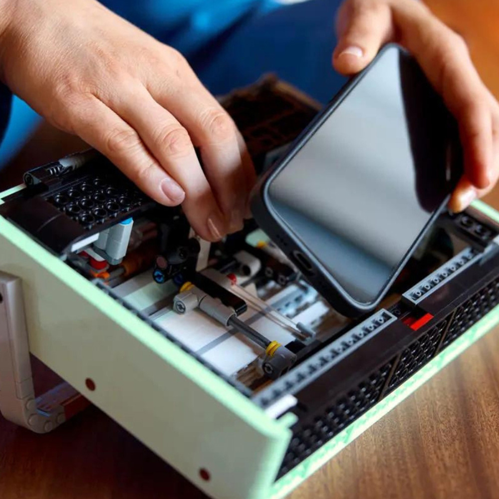 Build your imagination brick by brick with the LEGO 10334 Icons Retro Portable Radio. Create a detailed model of a 1970s vintage radio complete with a fold-up handle, an antenna, classic power and tuning dials, and a sliding frequency switch. The rear compartment securely holds your smartphone so that you can enjoy your favourite music. Turn the dials to emit tuning signals and snippets of music. Immerse yourself in an engaging building experience with this set. Total pieces: 906.