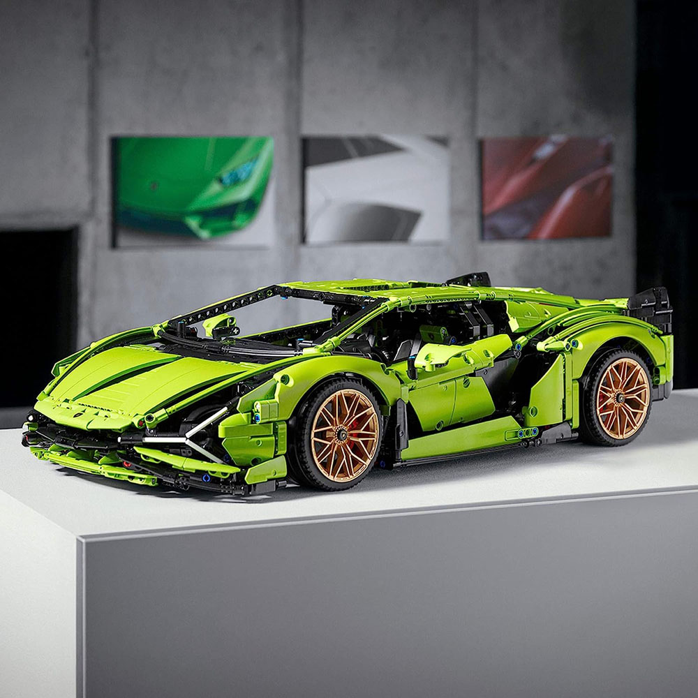 Create a luxurious and stunning display piece to enjoy with the LEGO Technic Lamborghini FKP 37 Building Kit. With superb detailing, the model car is a faithful representation of the original Sián FKP 37 in eye-catching lime green with golden rims. The features include the 8-speed transmission, activated by the movable paddle gearshift, a V12 engine with moving pistons, and a 4-wheel drive. Use the steering wheel to position the car, then check out the front and rear suspension. Just like the full-size super sports car, this model car features classic scissor-opening doors. Presented in a luxury box, it includes an exclusive coffee-table-quality book with building instructions, images and behind-the-scenes interviews. The set includes 2585 pieces and is suitable for ages 18 years and above. Model no: 42115.