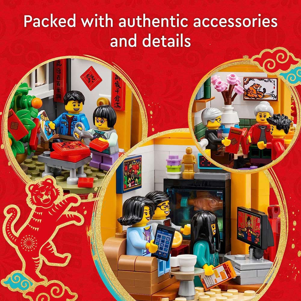 Create a unique display this festive season with LEGO Lunar New Year Traditions Building Kit. It features six brick-built scenes that are packed with authentic details, and each portrays different festive activities, including food shopping, making good-luck decorations, visiting family and exchanging ‘Hongbao’ red envelopes. There are separate building instructions for each of the detailed scenes so the whole family can build together, and the modules can be arranged in multiple ways to create a unique display. The set features 12 LEGO minifigures, including the God of Wealth and a family of six people. Suitable for ages 8 and above. Model no: 80108.