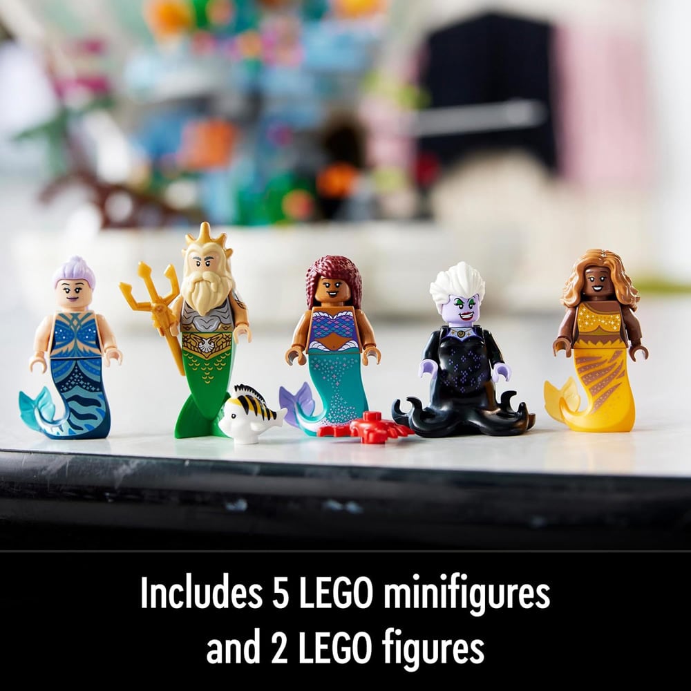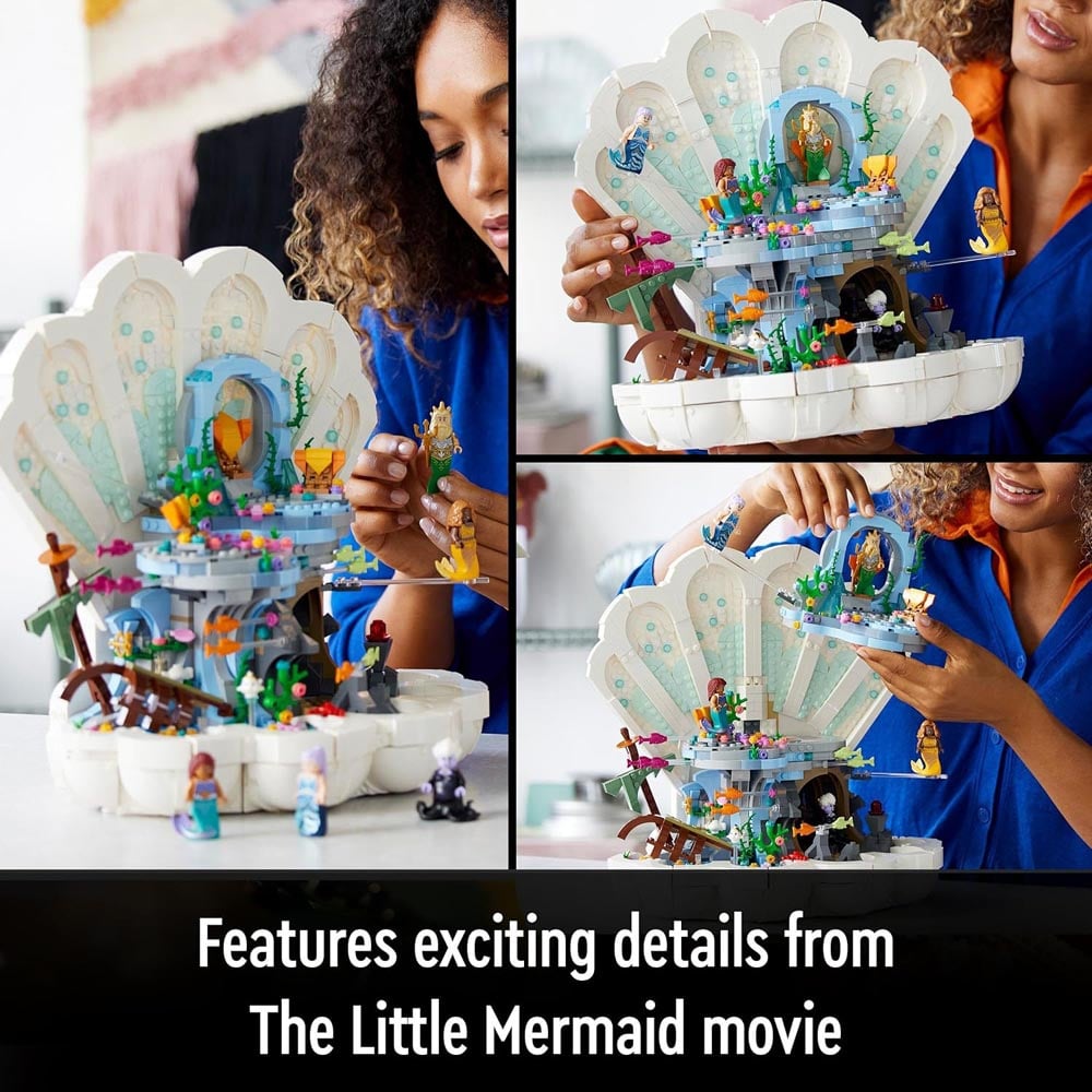 Share your love of Disney’s The Little Mermaid with this LEGO Disney The Little Mermaid Royal Clam Shell set. Based on the live-action The Little Mermaid film, this detailed, 1808-piece set showcases three key areas including the King Triton’s throne rock, Ariel’s hideout filled with treasures and Ursula’s mysterious cave. It comes in a unique shell designed for display with the Disney Princess Ariel, Karina, Indira, King Triton and Ursula LEGO minifigures, plus Sebastian and Flounder LEGO figures. The shell measures over 32cm (12.5 inch) high, 31cm (12 inch) wide and 20cm (7.5 inch) deep and makes a gift for yourself or friends. Model no: 43225. Suitable for ages 18 years and above.