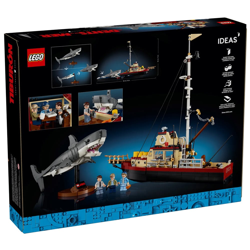 Relive dramatic moments from a beloved film with the LEGO Ideas Jaws diorama kits for adults (21350). A fun shark gift for Jaws fans, classic film lovers or film memorabilia collectors, the set features the Orca LEGO boat model, which has a detailed cabin with a removable roof, an adjustable boom and rigging, plus lots of iconic accessories. It can be placed on a brick-built seawater base with the Jaws LEGO shark model attacking the boat. Attach a printed tile with Chief Brody’s famous line (“You’re gonna need bigger branches) to the base to complete a nostalgic and playful centrepiece. This collectable Jaws LEGO diorama set also includes three iconic characters – Chief Martin Brody, Matt Hooper and Sam Quint – plus an alternative display stand where the fully built Jaws shark figure can be displayed with the minifigures.
