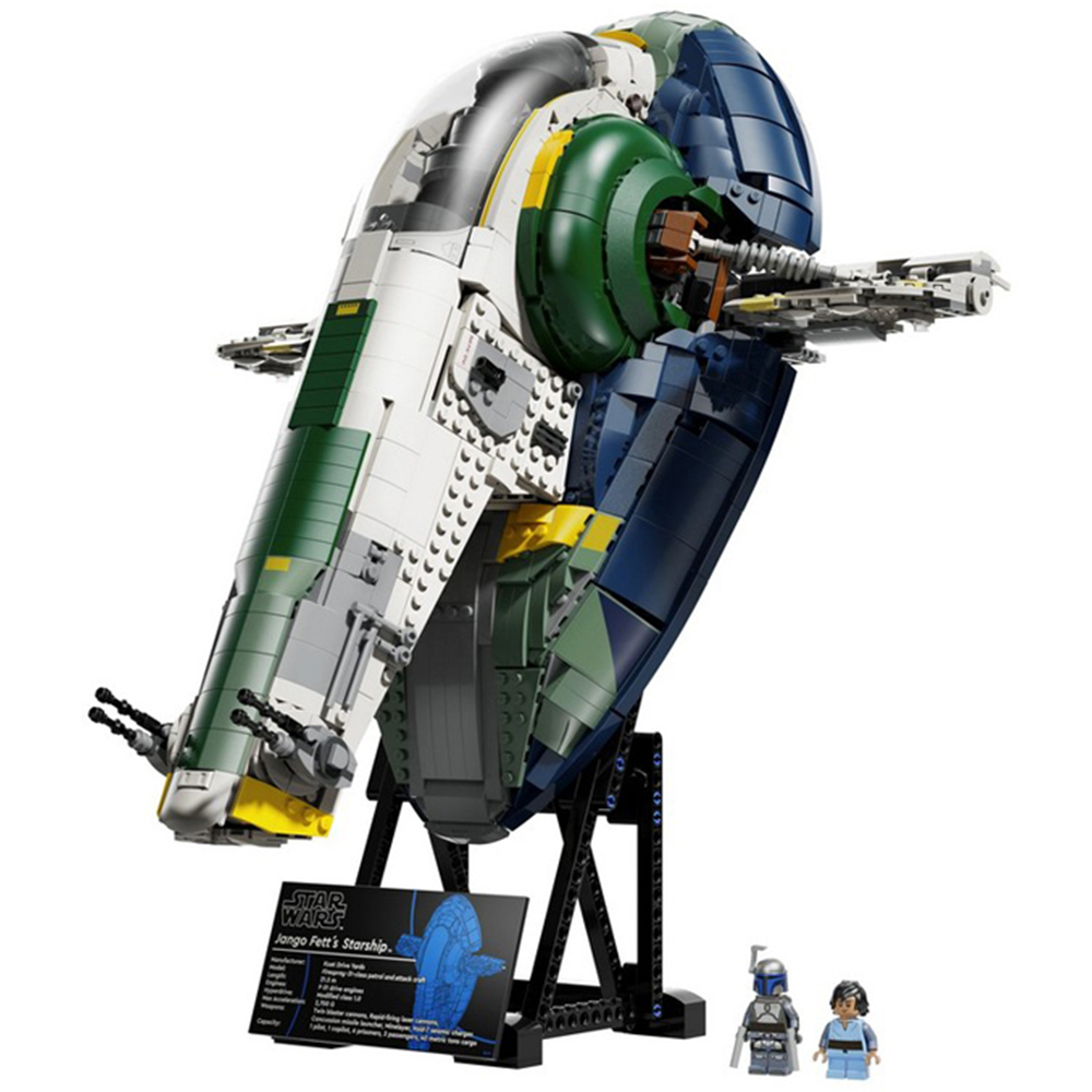 Bring the galaxy to your shelf and relive epic adventures as you construct this Lego Star Wars Jango Fett starship set with minifigures, designed for creative adult fans and collectors. Discover a build packed with authentic details like a removable cockpit section for Jango and Young Boba Fett minifigures, a press-down main entrance, hidden compartment for a seismic charge and adjustable blaster cannons. Measuring over forty-four centimetres long, the model includes a display stand for landing or upright flight mode, with wings that cleverly remain horizontal when tilted.