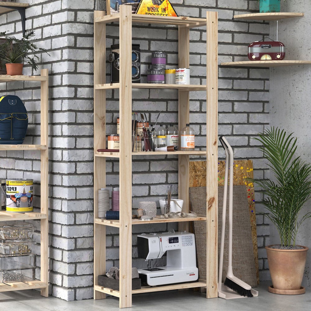 Add extra storage space to your home with a Leighton Natural Wood 5-Shelf Slatted Storage Unit. A perfect blend of modern design and functionality, this versatile storage unit is crafted to fit seamlessly into your office, bedroom, or living area, transforming space into stylish storage. Whether it's a range of books, toys, decorative items, or everyday essentials, this shelf gives ample space. It's made of pine timber, which is smoothly sanded and ready to finish any colour or leave it in its natural colour. Each shelf can support up to 3kg. Self-assembly required. Fittings and clear instructions are provided.