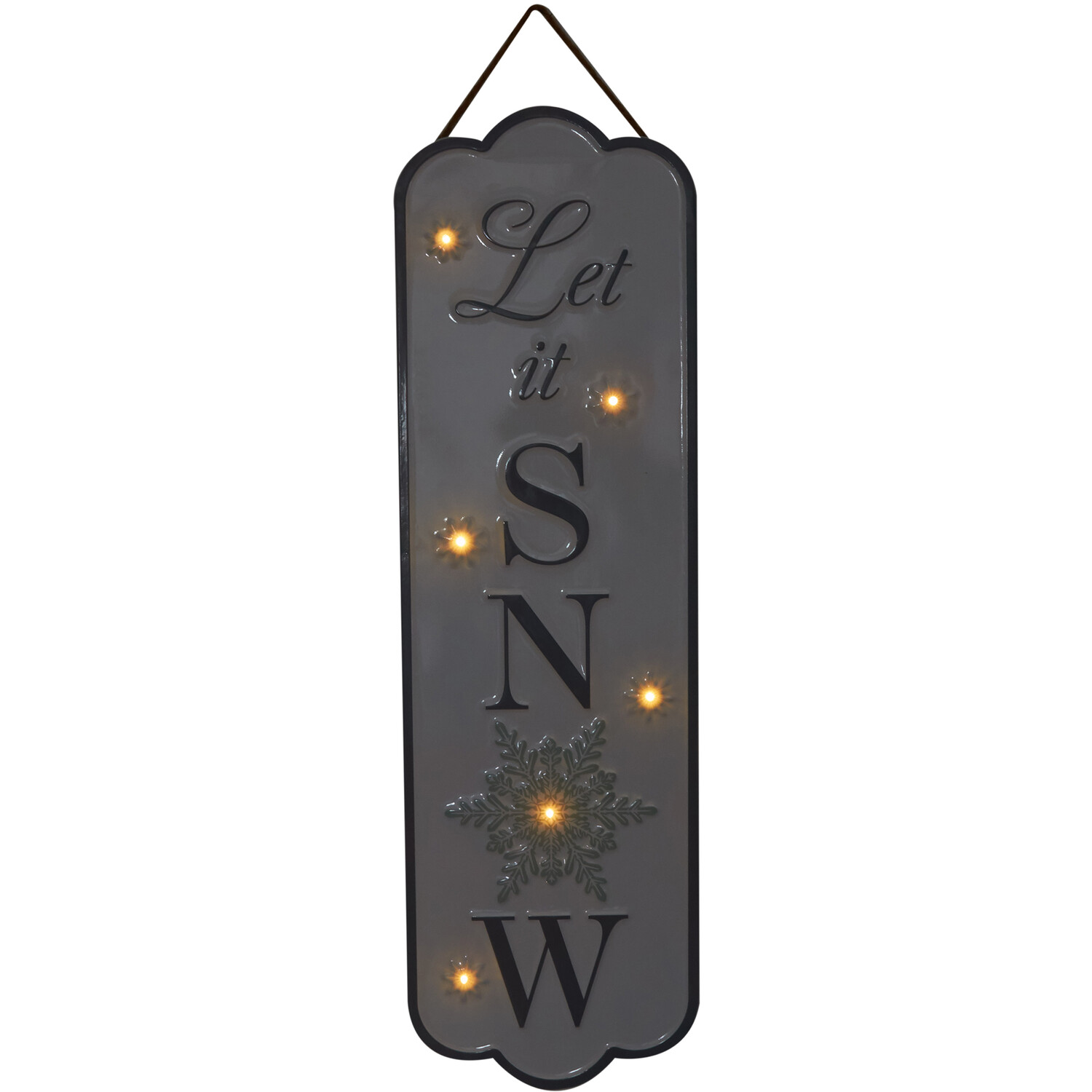 Embrace the winter season with this Let it Snow LED Sign. This delightful sign captures the magic of snowfall and brings a cosy, festive vibe into your space. Perfect for holiday decorations, it comes with a 'Let it Snow' text and snowflakes to create a cheerful atmosphere. Easy to hang, it includes an attachment for simply affixing it anywhere.