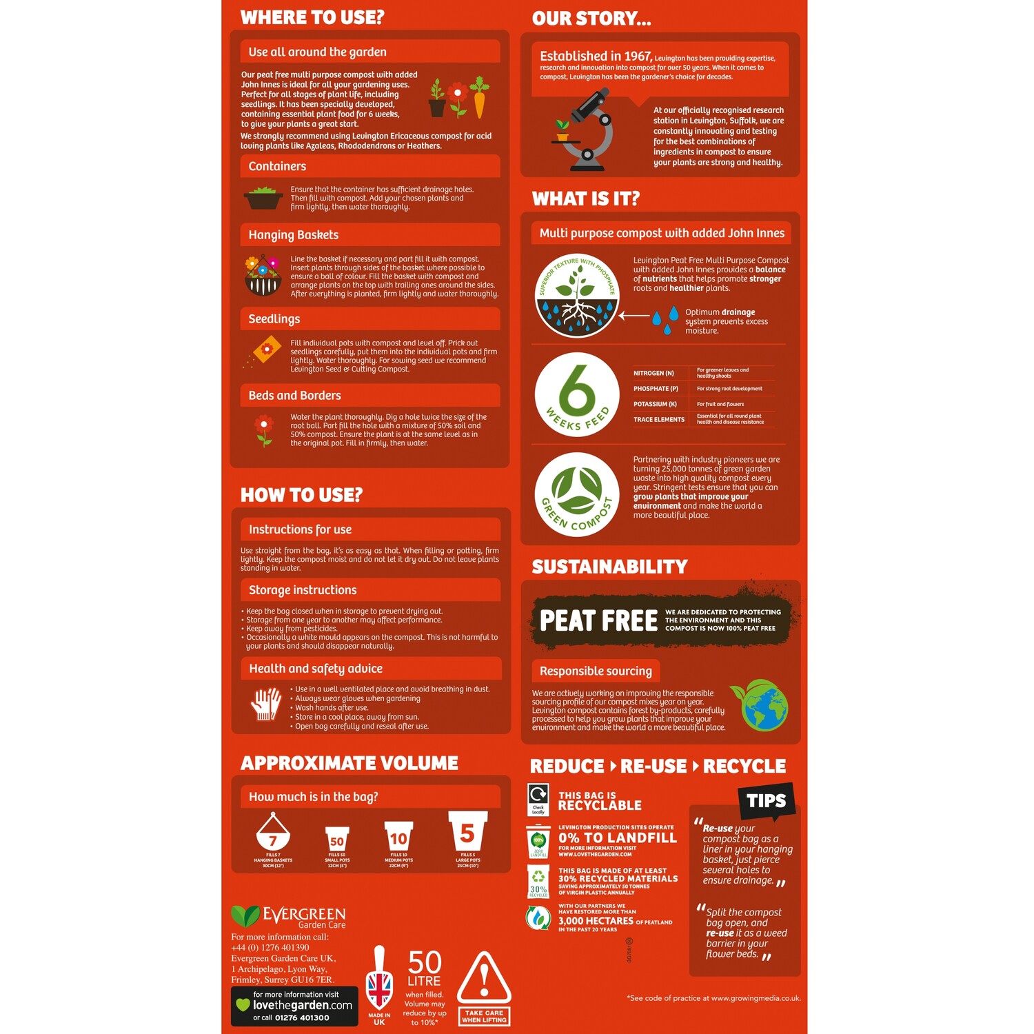 This Levington Peat Free Multi Purpose Compost with added John Innes contains a balanced combination of nutrients that will feed your plants for up to six weeks. Its unique formulation with grit and phosphate provides the perfect combination for strong and healthy roots. Ideal for all plants, flowers, fruits and vegetables, this compost is a fanatic choice for any keen gardener. Works well for sowing larger seeds and for cuttings, young and grown plants. Perfect for use in pots and containers, baskets, beds and borders.