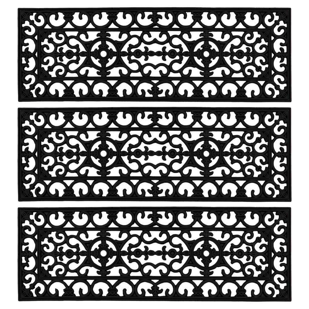 Suitable for outdoor use on steps, the JVL Lexi Step Mat is a thick and durable rubber mat, perfect for outdoor steps. They’re slip resistant, hardwearing and suitable for all weathers, making them a great mat to use all year round. It features a timeless design creating a wrought iron effect to greet your guests. The curved rubber helps to create a better grip and reduce the risk of slipping. The shape also provides great scraping qualities to remove excess mud, plus it’s easy to clean, simply shake or hose. Pack of 3. Each mat measures 25 x 75cm approximately.