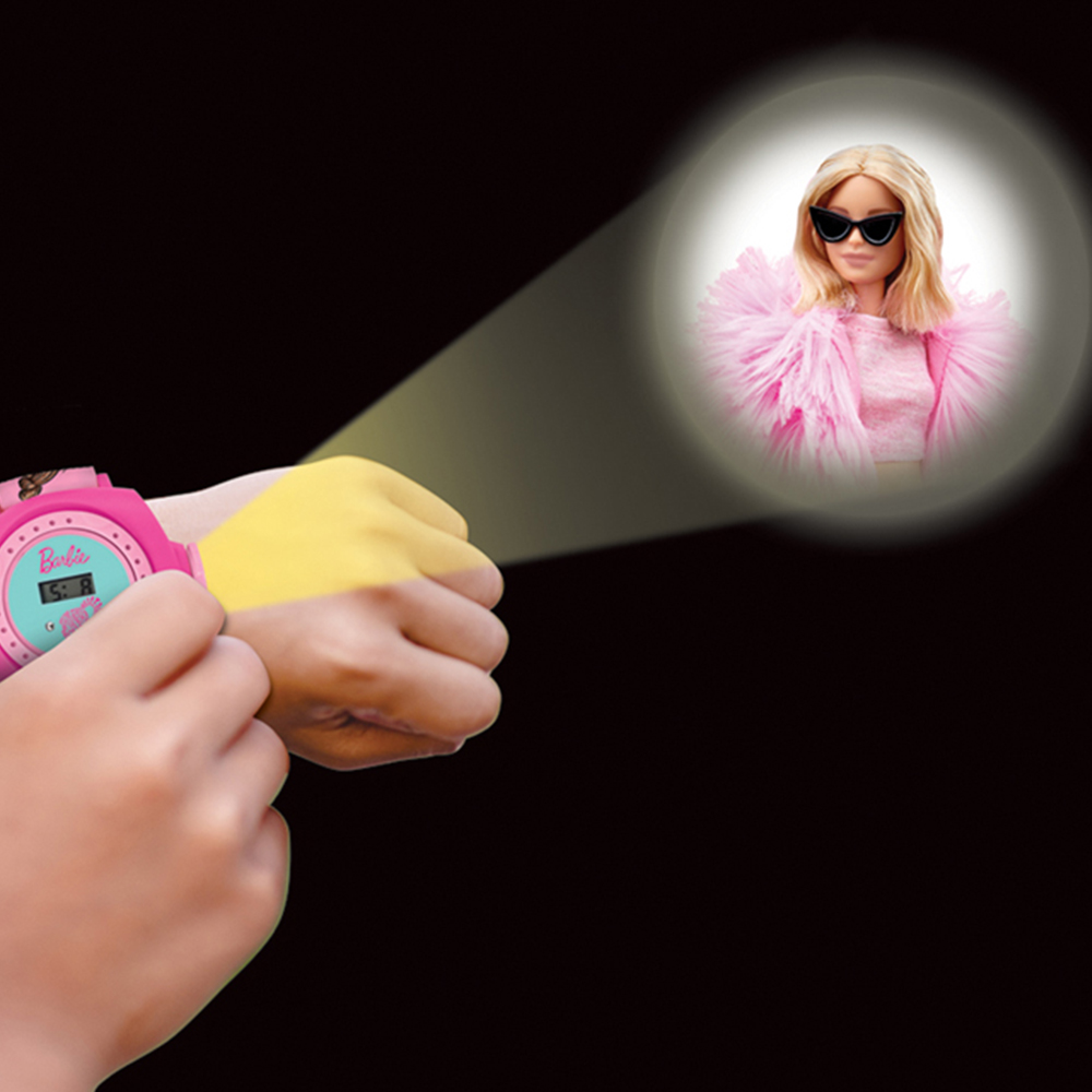 Amplify fun and play among young minds with the Lexibook Barbie Children Projection Watch. The children's projection watch is a fun and interactive gadget that comes with 20 different images to project onto any surface. This watch lets children communicate with their friends by sending coded messages using the projected images. It features an adjustable bracelet to fit small wrists and a movable ring for projecting images. The power supply consists of 5 x AG3/LR41 batteries, which are included with the watch.