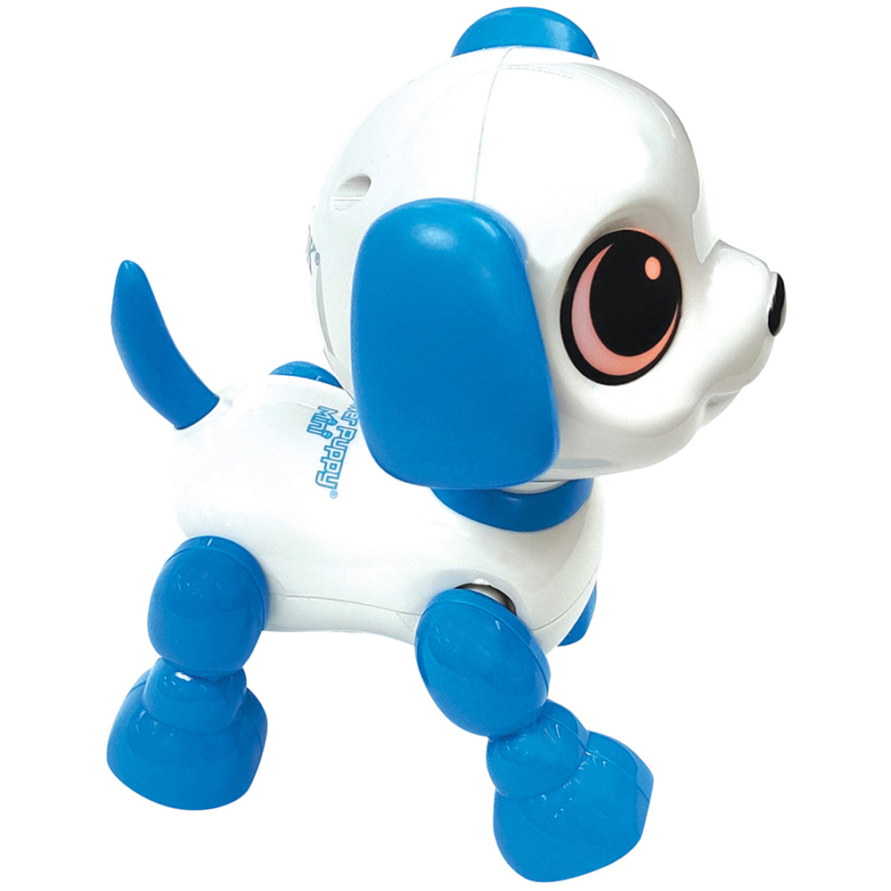 Bring your child's new buddy home with a cute little dog with lots of functions and is a very easy-to-use toy. The little dog will move by turning his head forward, in the centre or back. It features various sound and light effects. This mini robot requires a power supply of two AAA batteries (not included).