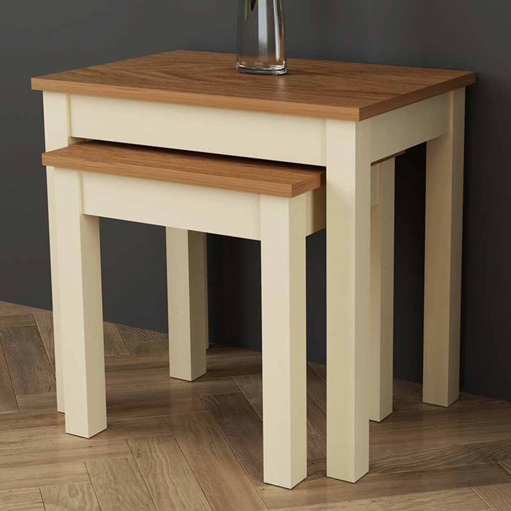 Elevate your living space with the Lexington Cream Nest of Tables Set of 2. With plenty of space to store a statuette or a vase of flowers on top, the second table beneath gives you even more space to play with. A fabulous space-saving piece of furniture, this nest of tables is perfect for those who live in small houses or flats. Add even more style to your home with other items from the Lexington collection.