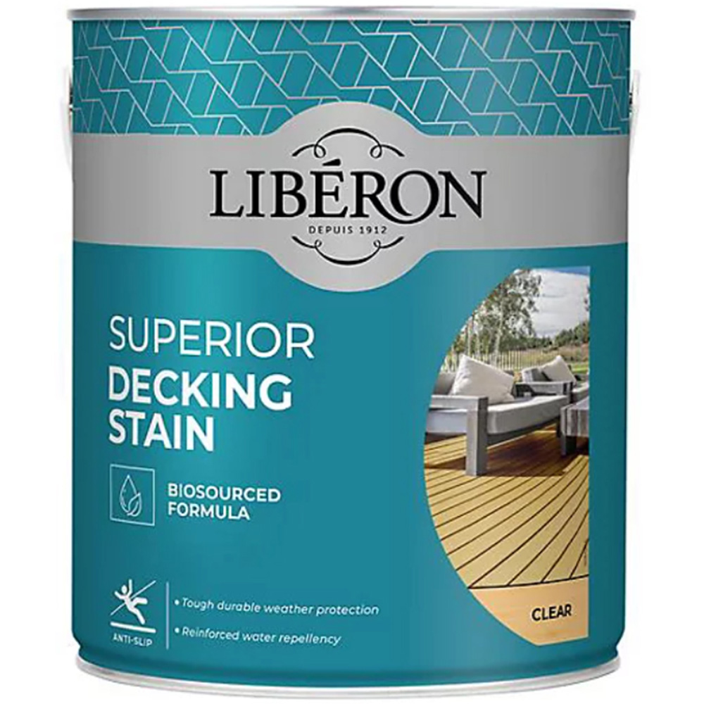 Improve the look of your decking with Liberon Superior Clear Decking Stain 5L. This premium decking stain not only enhances the appearance of your deck but also helps preserve it. It provides strong protection against water, UV rays, and slips, ensuring your deck stays beautiful and safe for years. Additionally, its eco-friendly formula, made from vegetable oils and bio-based resins, minimizes environmental impact.