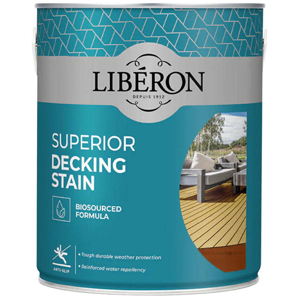 Improve the look of your decking with Liberon Superior Teak Decking Stain 2.5L. This premium decking stain not only enhances the appearance of your deck but also helps preserve it. It provides strong protection against water, UV rays, and slips, ensuring your deck stays beautiful and safe for years. Additionally, its eco-friendly formula, made from vegetable oils and bio-based resins, minimizes environmental impact.