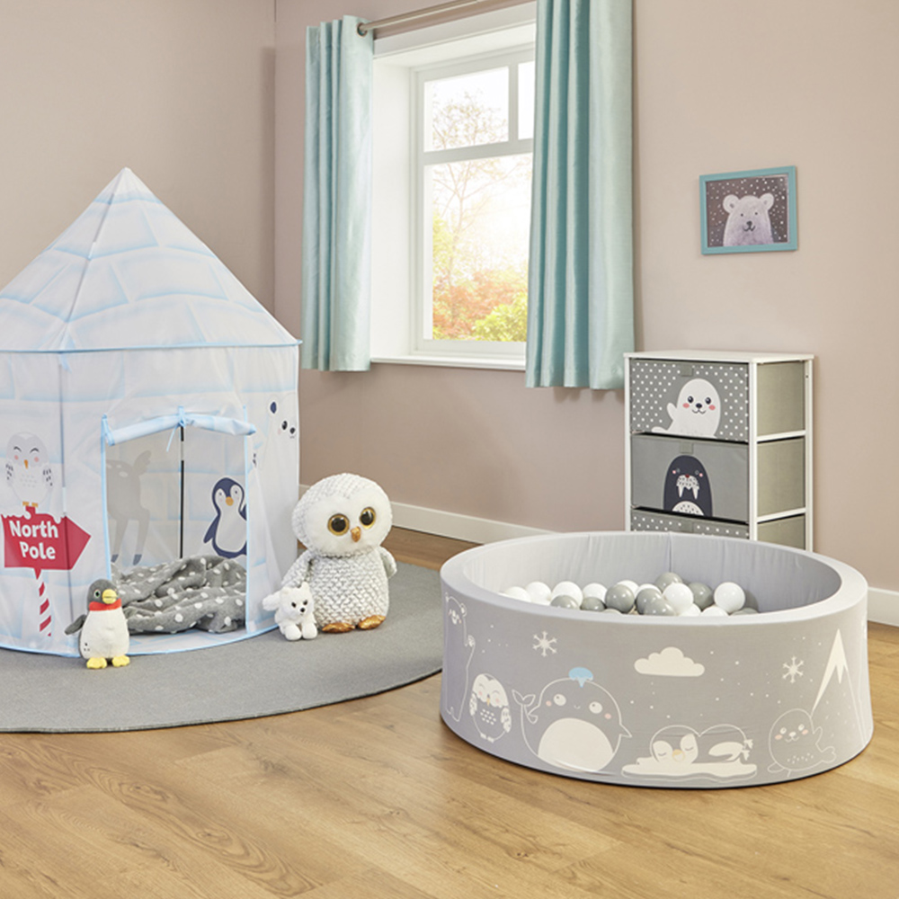 Enhance your baby's fine motor skills and eye-hand coordination with this Liberty House Toys Arctic Ball Pit. Made with quality PU foam and durable milk fibre fabric, it's soft and gentle on the skin. The balls are made from non-toxic and safe plastic to ensure your little one's well-being. This soft foam ball pit comes in a unique and exclusive design and is complete with 200 balls. Great for developing fine motor skills, stimulating cognitive function and eye-hand coordination, it provides a deep-pressure sensation that encourages relaxation among children.