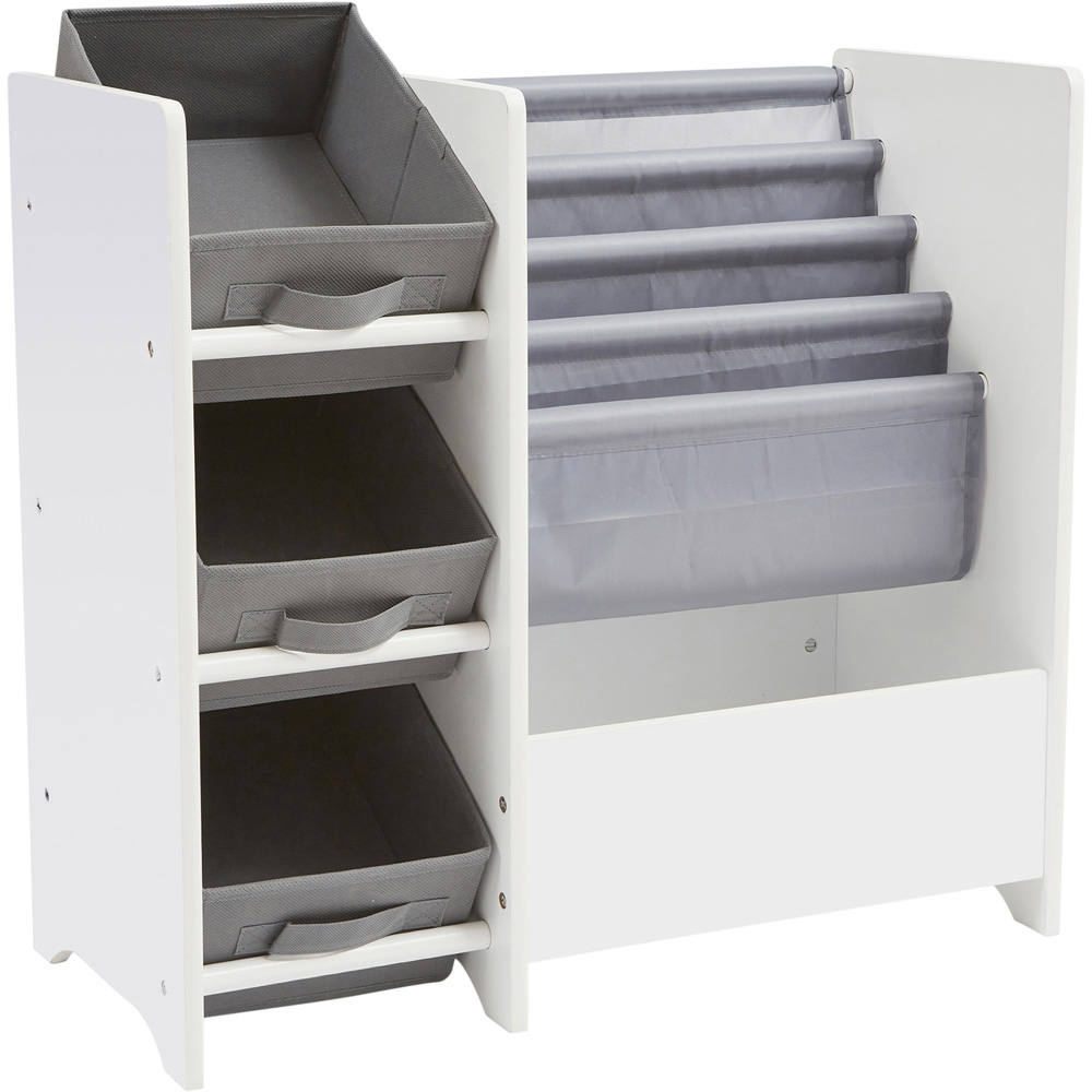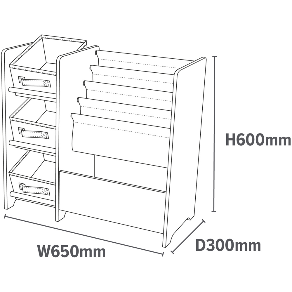 Transform your child's room into an organized and stylish haven with the Liberty House Toys Kids White Book Display with Storage. This cleverly designed unit combines functionality and aesthetics to create a clutter-free space that sparks joy and encourages a love for reading. Crafted from sturdy wood and finished with a durable lacquer coating, this display unit is built to withstand the demands of a busy playroom or bedroom. The scratch-resistant surface ensures it maintains its pristine appearance even after countless adventures. This display unit features fabric storage boxes that provide a convenient and accessible solution for keeping belongings tidy. The boxes are perfectly sized to accommodate books, small toys, art supplies, or any other treasures your child holds dear. This display unit is designed with rounded corners, eliminating sharp edges and reducing the risk of accidents. Cleaning up is a breeze. Simply grab a damp cloth and wipe away any spills or smudges. The lightweight construction allows for easy moving and rearranging, so you can adapt the space to suit your child's changing needs and preferences. Suitable for ages 2 years and above, this storage solution is a versatile and practical addition to any playroom or bedroom. Size: Storage Unit Dimensions: H600 x W650 x D300mm, Storage Box Dimensions: H130 x W200 x D250mm.