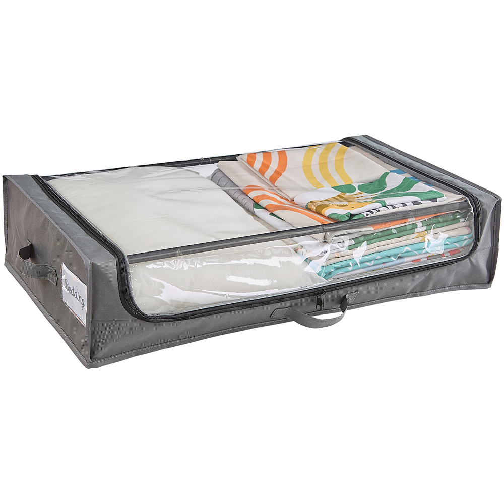 Clutter can be neatly tucked away in these simple but stylish storage units and can be effortlessly retrieved as required. This unique underbed storage cart is made from tough breathable Oxford fabric with a sturdy metal frame and has a large transparent PVC visibility window for easy identity of contents. Ideal storage unit for toys, books, clothes, soft toys, shoes, bedding, blankets, and any other belongings that require accessible storage.