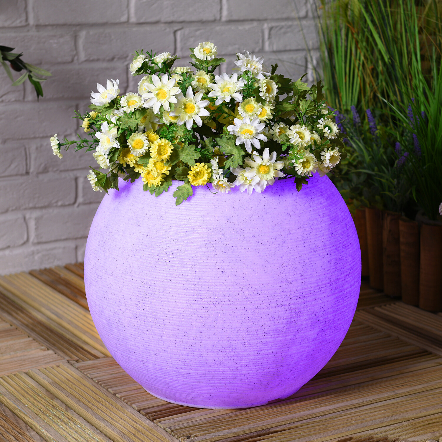 Illuminate your garden with the Light Up Plant Pot. This stylish plant pot cover is a fantastic addition to any outdoor space. It includes a remote control for easy use, a convenient four-hour timer, and can shine for up to 240 hours. Simple yet elegant, it's the perfect way to add some light and flair to your garden.