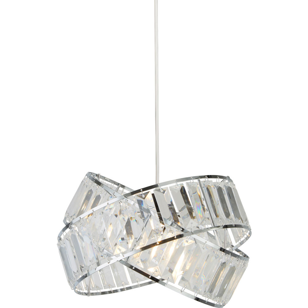 This intertwining ring chrome and clear acrylic pendant shade is all about adding a bit of sparkle to your space. The acrylic detailing lets the light spill through, creating a beautiful play of brightness and shadow. With its luxurious, faceted design, it reflects light in the most stunning way, making the room feel vibrant and dynamic. And since it’s non-electric, it’s super easy to fit and customise with your favourite bulb. It’s the perfect touch for a space that deserves a little extra shine.