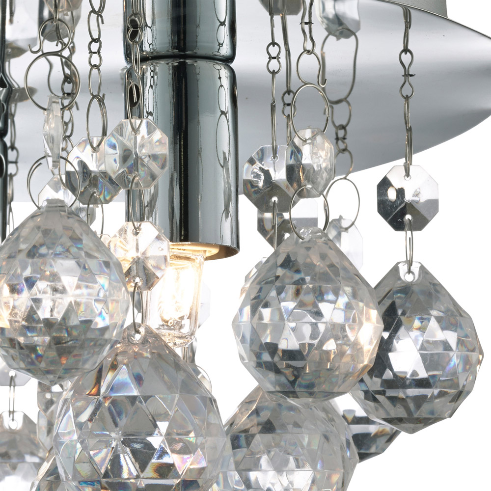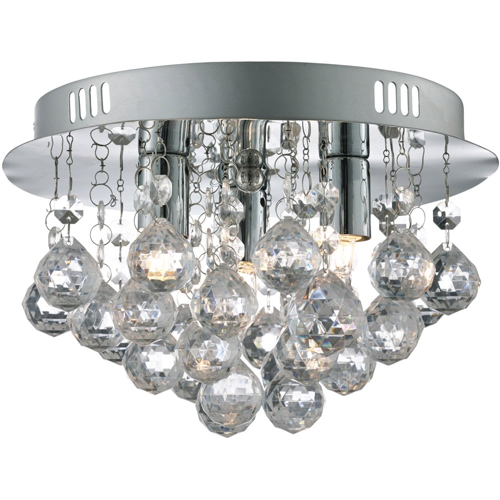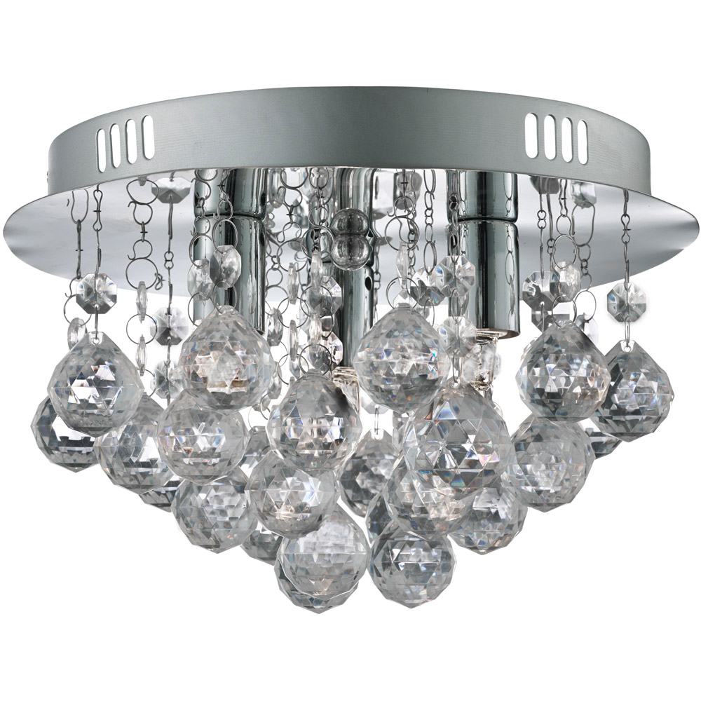 Add a touch of modern elegance to your home with this stylish ceiling flush. Featuring clear acrylic drops cascading from a round ceiling plate, it creates a beautiful play of light and shadow. Designed for 3 x GLS LED bulbs, it provides bright, even lighting while doubling as a striking focal point. Perfect for adding a hint of glamour to your living room, bedroom, or hallway without taking up too much space.