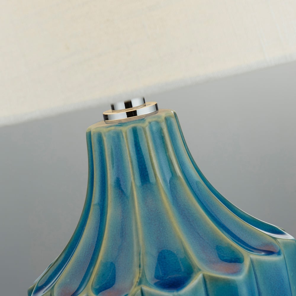 This blue ceramic table lamp is the perfect way to bring a bit of coastal charm into any room. Its vertical grooves on the base add a unique design feature, while the painted and plated blue ceramic gives it a fresh, soothing vibe. The white linen shade completes the look, creating a soft, warm glow. At 44cm tall, it's the ideal size to make a statement without overpowering your space. Plus, with its white inline switch and LED bulb, it’s practical and stylish - a must-have for any room in your home!