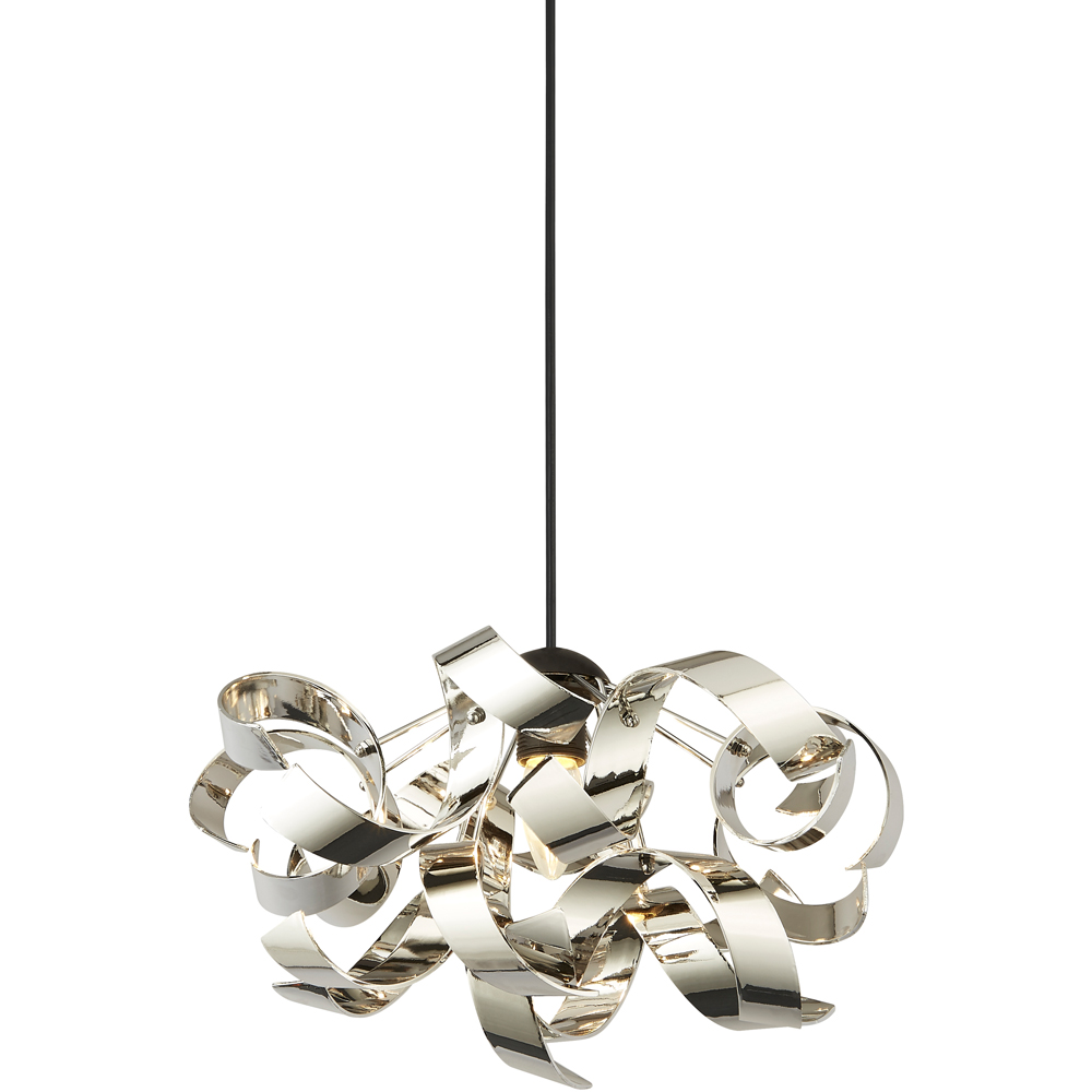 Looking for a sleek and stylish lighting update? This chrome pendant with its unique curle design is just the thing! Made from durable mild steel and acrylic, it's not just about looks – it’s practical too, with adaptable fittings for B22, E14, and E27 bulbs. Plus, the easy-fit feature makes installation a breeze. Modern lighting made simple!