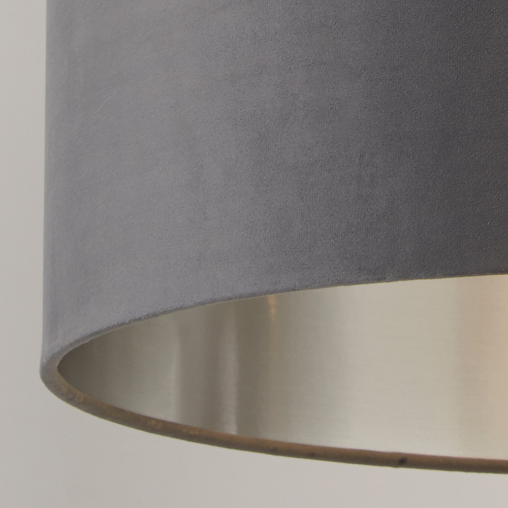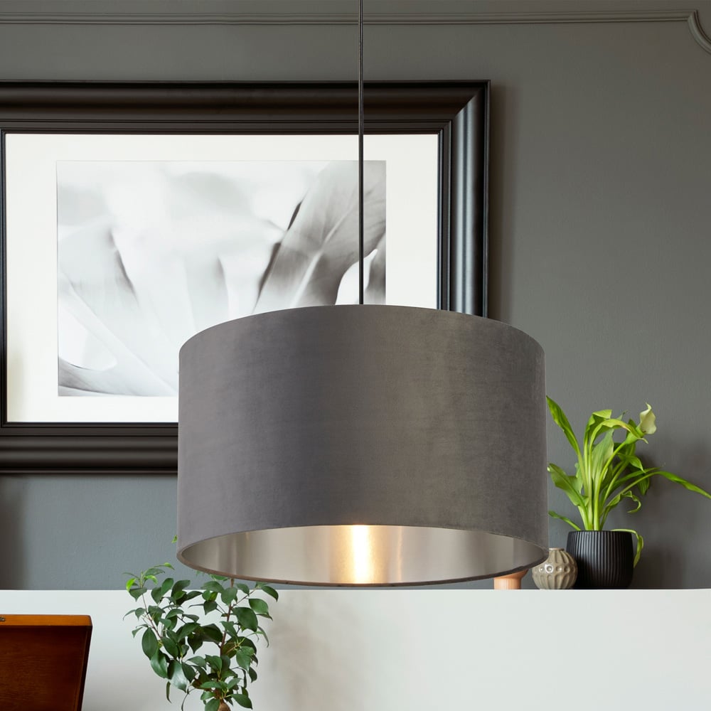 This dark grey velvet drum shade offers a sleek, modern touch to your space. The rich grey exterior brings depth and sophistication, while the brushed silver inner lining creates a soft, elegant glow when the light is on. At 50cm in diameter, it’s the perfect size to add style without overwhelming the room. It fits B22, E14, and E27 fittings, so it’s easy to pair with your existing setup. Plus, being non-electric, it’s simple to fit and instantly enhances your home’s atmosphere.
