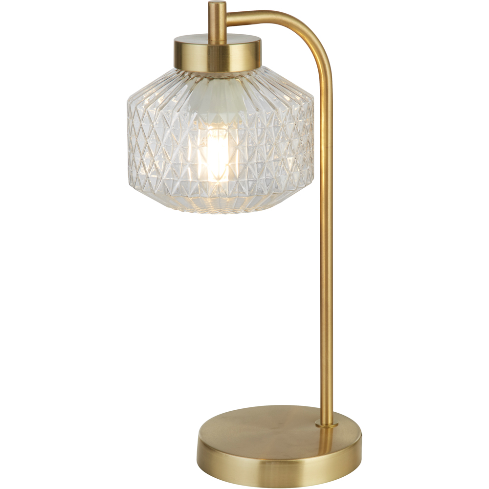 This 38cm tall table lamp brings a subtle touch of sophistication to any room. With its diamond grooved shade and satin brass base, it strikes the perfect balance between elegance and simplicity. It’s ideal for smaller spaces, like a side table or bedside, where you need just the right amount of light without overwhelming the room. The black inline switch makes it easy to control, and it uses just one golf ball LED bulb, keeping things energy-efficient and straightforward. A stylish and functional addition to your home, no matter where you place it.