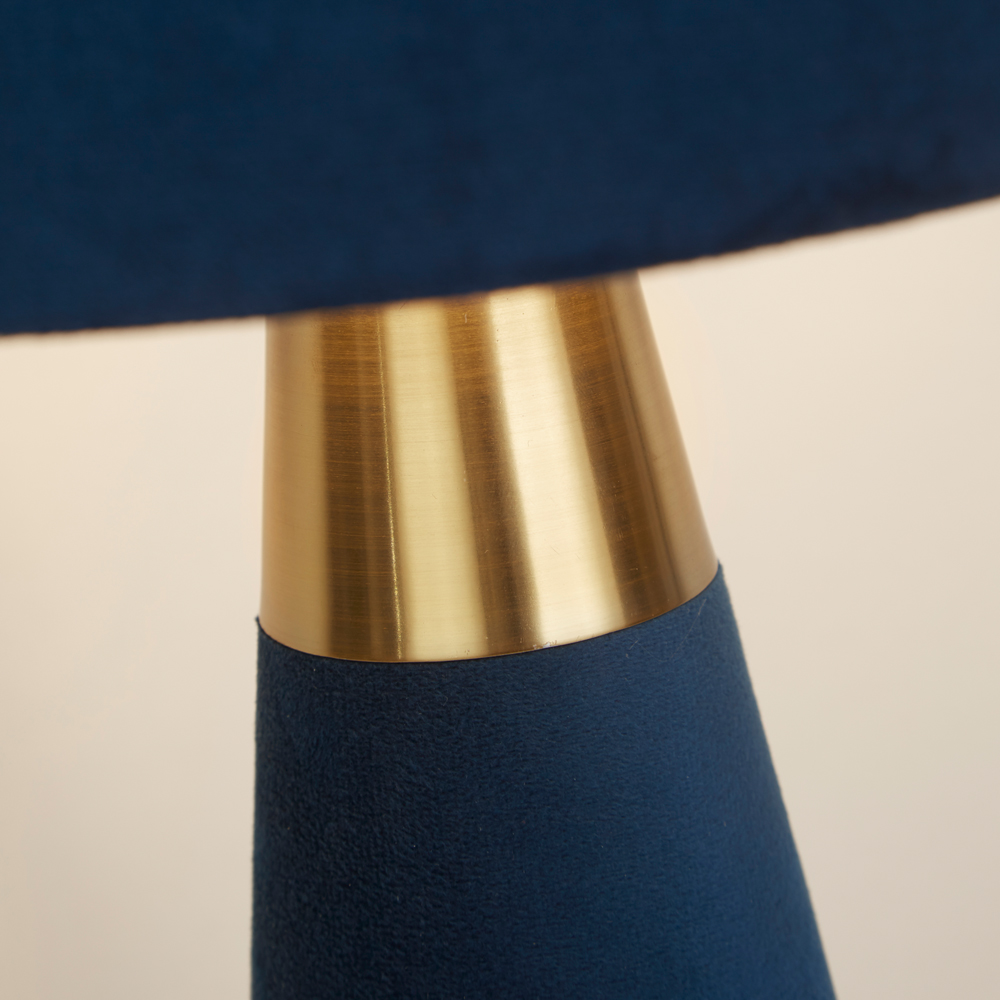 This table lamp brings a touch of luxury with its soft blue velvet shade and sleek satin brass detailing. The sloping base adds a modern twist, while the 48.5 cm height makes it the perfect size for any table. With a black inline switch for easy control, and sturdy mild steel construction, this lamp is as practical as it is stylish. Whether placed on a bedside table or in your living room, it effortlessly adds a stylish glow to your space.