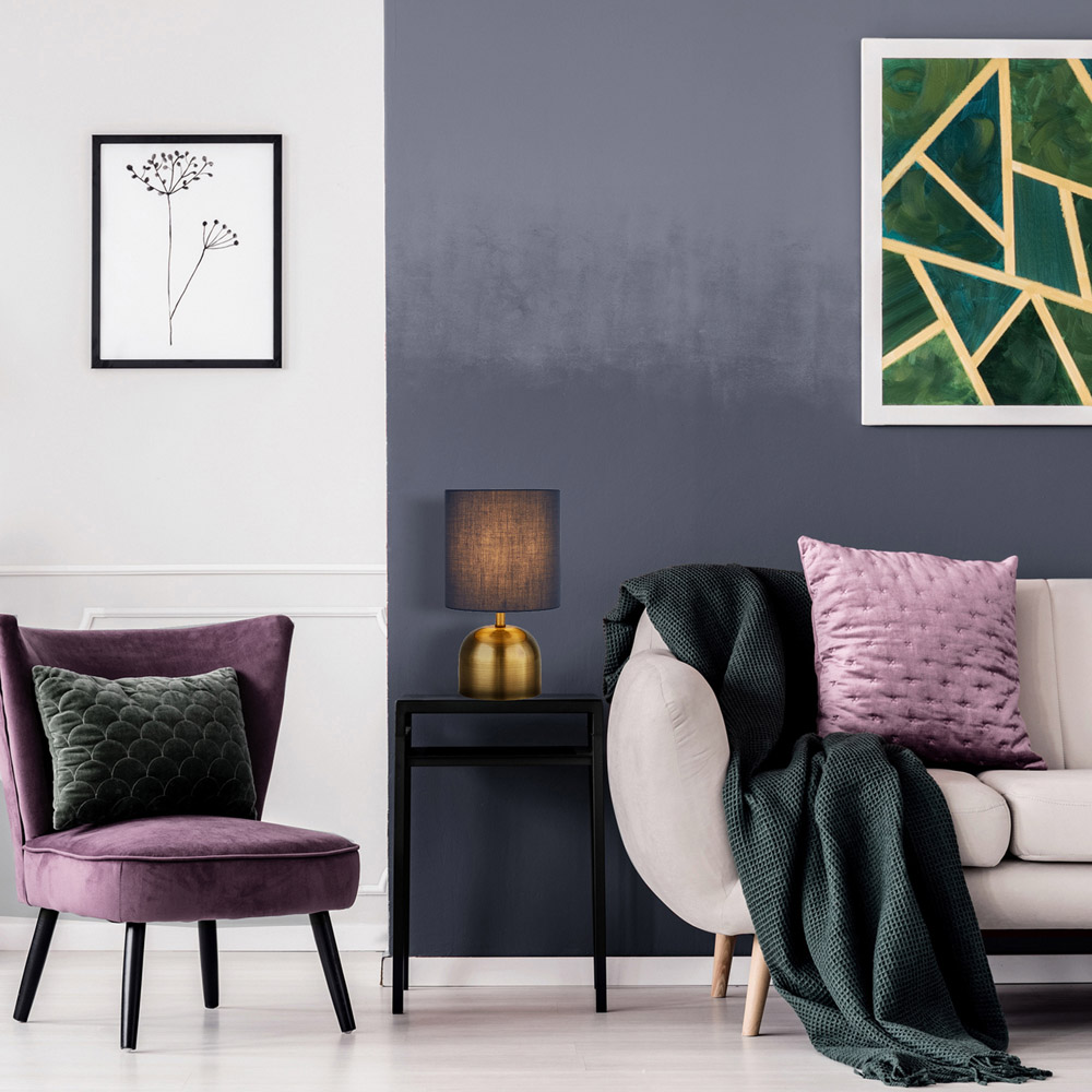 This table lamp is a stylish blend of sophistication and practicality. With a satin brass dome base and a striking navy blue fabric shade, it adds a touch of modern elegance to any room. The handy touch dimmer at the base makes it easy to adjust the light to just the right level, whether you’re relaxing or working. At 27.5 cm tall, it's the perfect size for a bedside table or desk. Simply pop in a candle LED bulb, and you’re good to go.