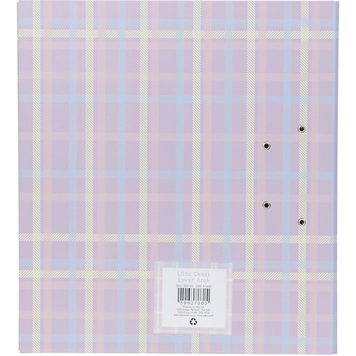 Ideal for home, work, and school, this Lilac Check Lever Arch will keep all your punched pockets, notes, and more organised. Featuring a trendy check design in gorgeous lilac shades, this folder is sure to brighten up your desk. It’s a stylish and practical solution to keep your documents organised and easily accessible.