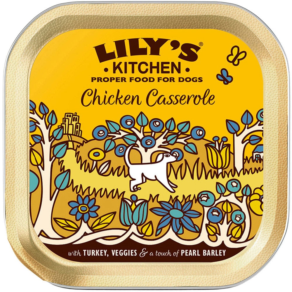 Delight your dog with a nourishing meal packed with natural goodness in Lilys Kitchen Chicken and Turkey Casserole Adult Wet Dog Food 150g. This tray features a wholesome recipe made with fresh chicken, turkey, brown rice, vegetables, fruits, and healthy herbs. Rich in vitamins and minerals, it supports overall health and energy, making mealtime both delicious and beneficial. Disclaimer: Allergy information and more details can be found on the packaging.