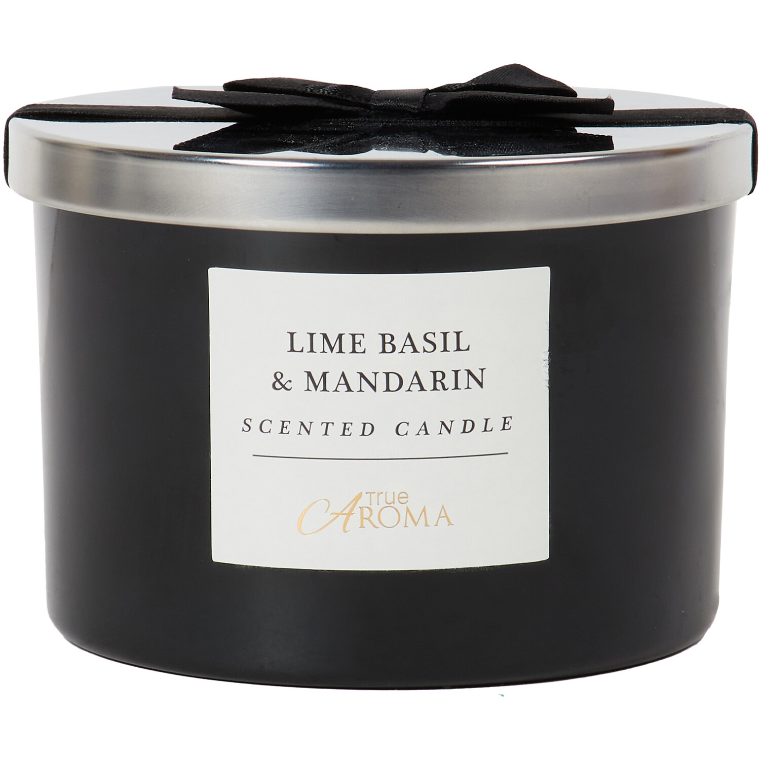 The Lime Basil & Mandarin Scented Candle is a gorgeous candle with a fresh citrus scent poured into a sophisticated, stylish black jar topped with a bow. The candle has three wicks to help it burn evenly and will fill any space with a delightful zesty fragrance to making your space feel warm and inviting. It will look stunning on accent tables, shelves, and mantelpieces in most rooms, giving your home a sophisticated feel.