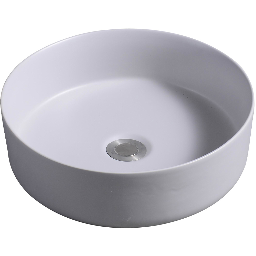 Limoge 7844 Ceramic Vert Round Countertop Basin in cement. This basin is a modern and minimal ceramic countertop basin that comes with a straight and vertical, thin edge. Perfect for countertops and cupboards. Also comes with a matching pop-up waste system.