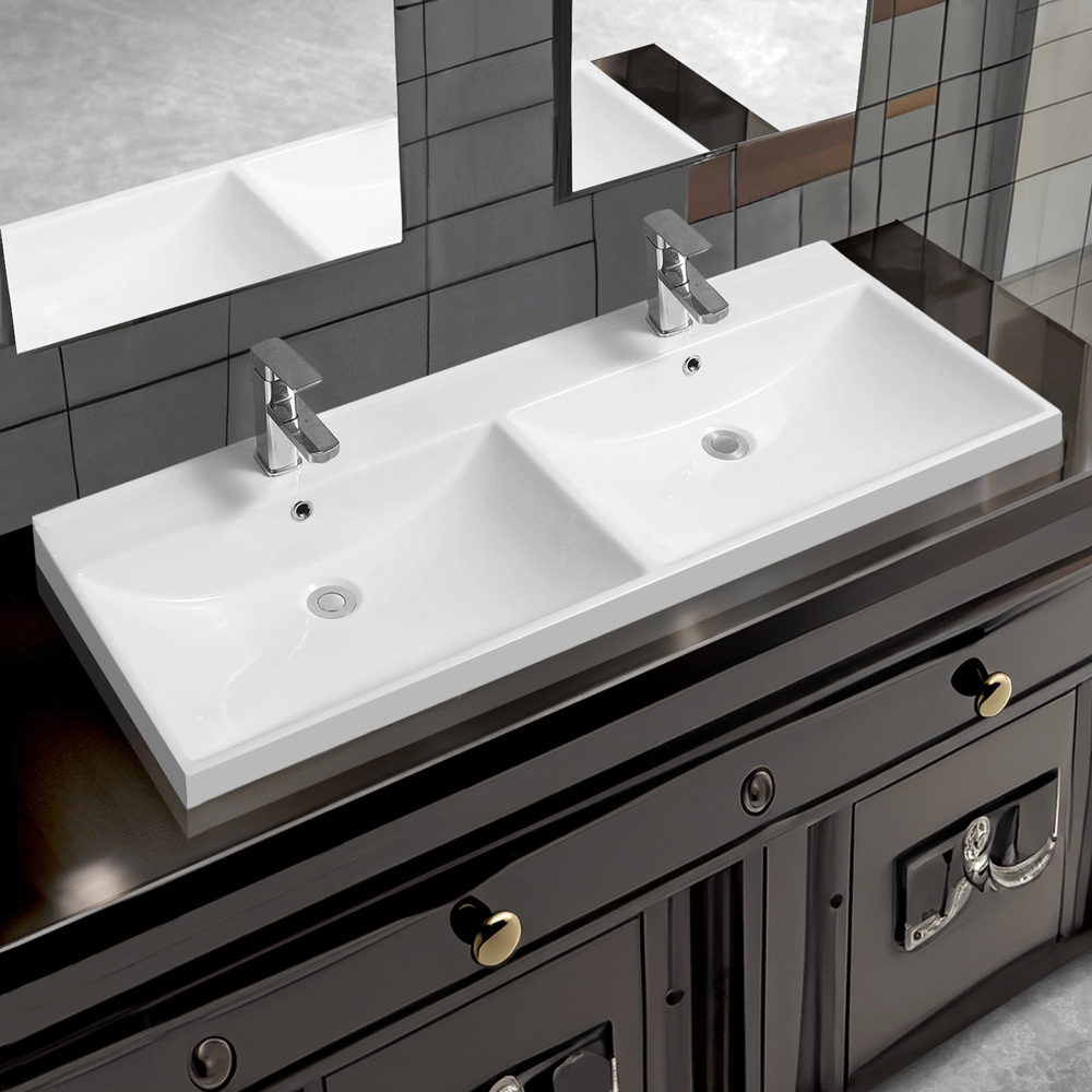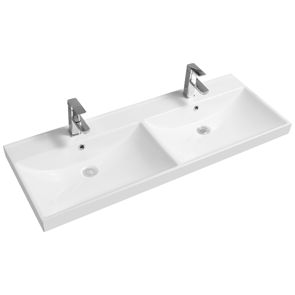 Limoge 5409 Ceramic 120.5cm Thick-Edge Double Inset Basin with Scooped Full Bowl - Ultra-Modern and Minimalistic Appearance - Full-Width Scooped Bowl with a Rectangular Edge - High Exterior Height for a Deep and Robust feel - Inset Basin Design, Perfect for Countertops and Cupboards - Comes with 35mm Holes Pre-drilled. Taps not included. This range of Modern and Minimal Ceramic Inset Basins comes with a Thick-Edged, High Exterior Height with a Rectangular Scooped Bowl which extends to the full width of the Basin, Perfect for Countertops and Cupboards. 1 x Limoge 5409 Ceramic 120.5cm Thick-Edge Double Inset Basin with Scooped Full Bowl. W: 120.5cm, D: 46cm, H: 16.5cm. Weight: 27kg REF: 106123.