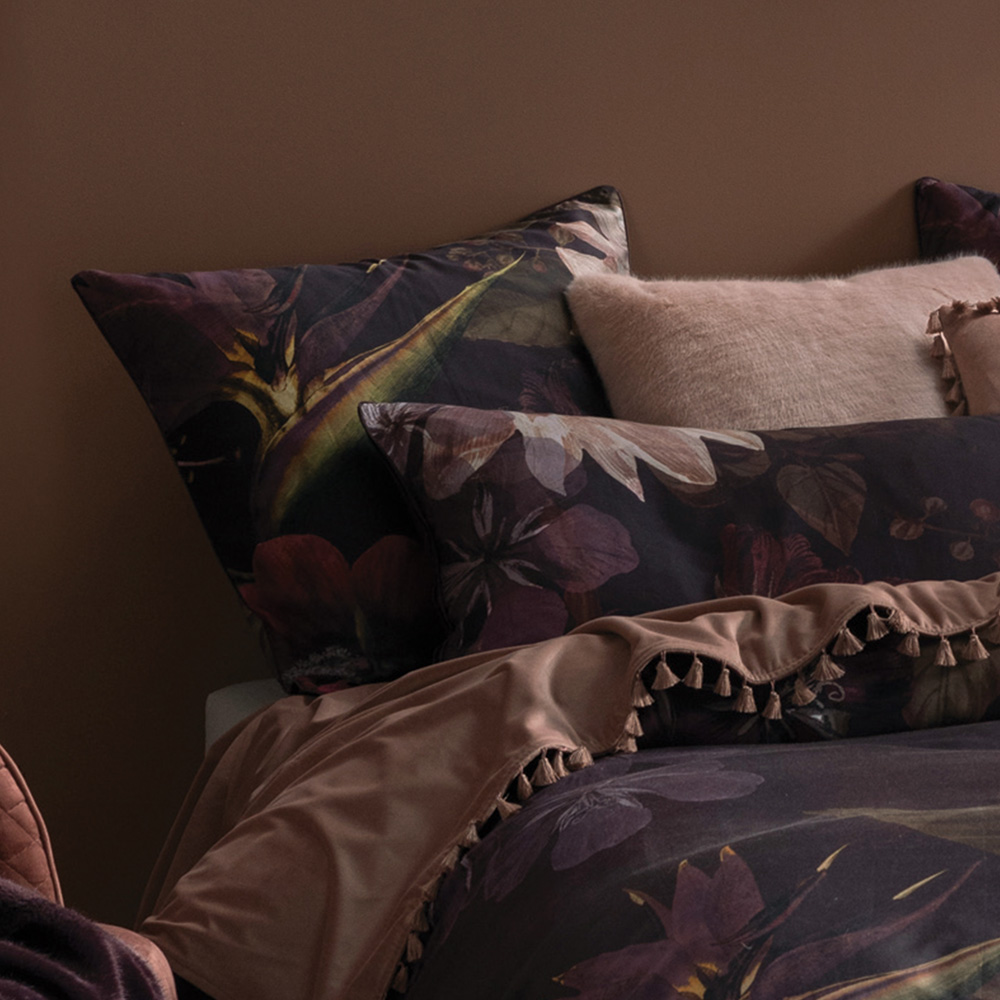 Add a unique touch to your bedroom decor with the Linen House Neve Double Dark Floral Duvet Cover Set. This duvet cover set features an array of foliage and tropical flora in the most delicious and richly saturated shades of plum and wine. This exquisite floral design will look magnificent and is crafted using 100% cotton fabric for ultimate comfort. This duvet cover set includes matching pillowcases with snap press stud closures. It exudes a calming look and effortlessly complements all types of interior spaces.