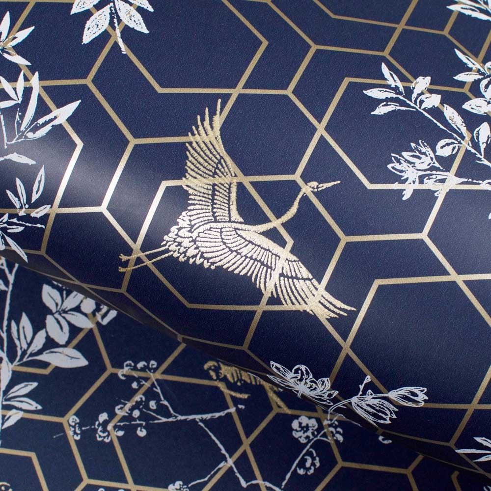 This Lipsy Himara Wallpaper is a luxurious Chinoiserie print which brings a touch of exoticism. An interpretation of Eastern artistic traditions, the wallpaper is characterized by beautiful stylized flower and bird motifs combined with a metallic geometric print in blue and gold colourway. Super easy to hang, it will add a timeless charm to your interiors.
